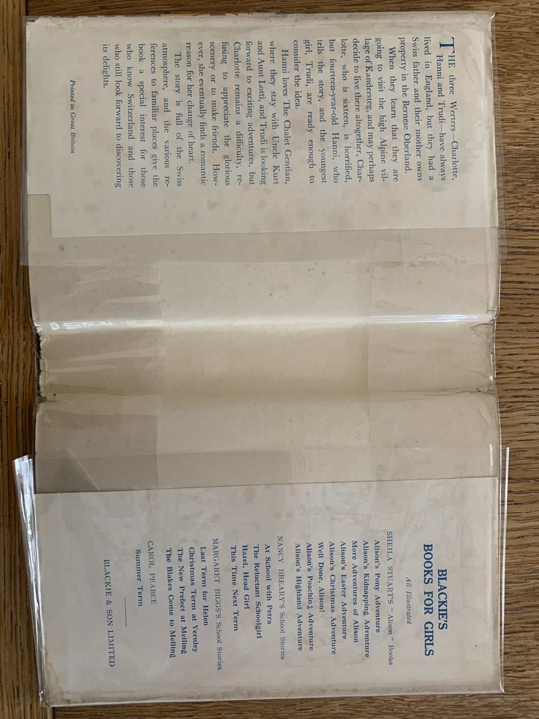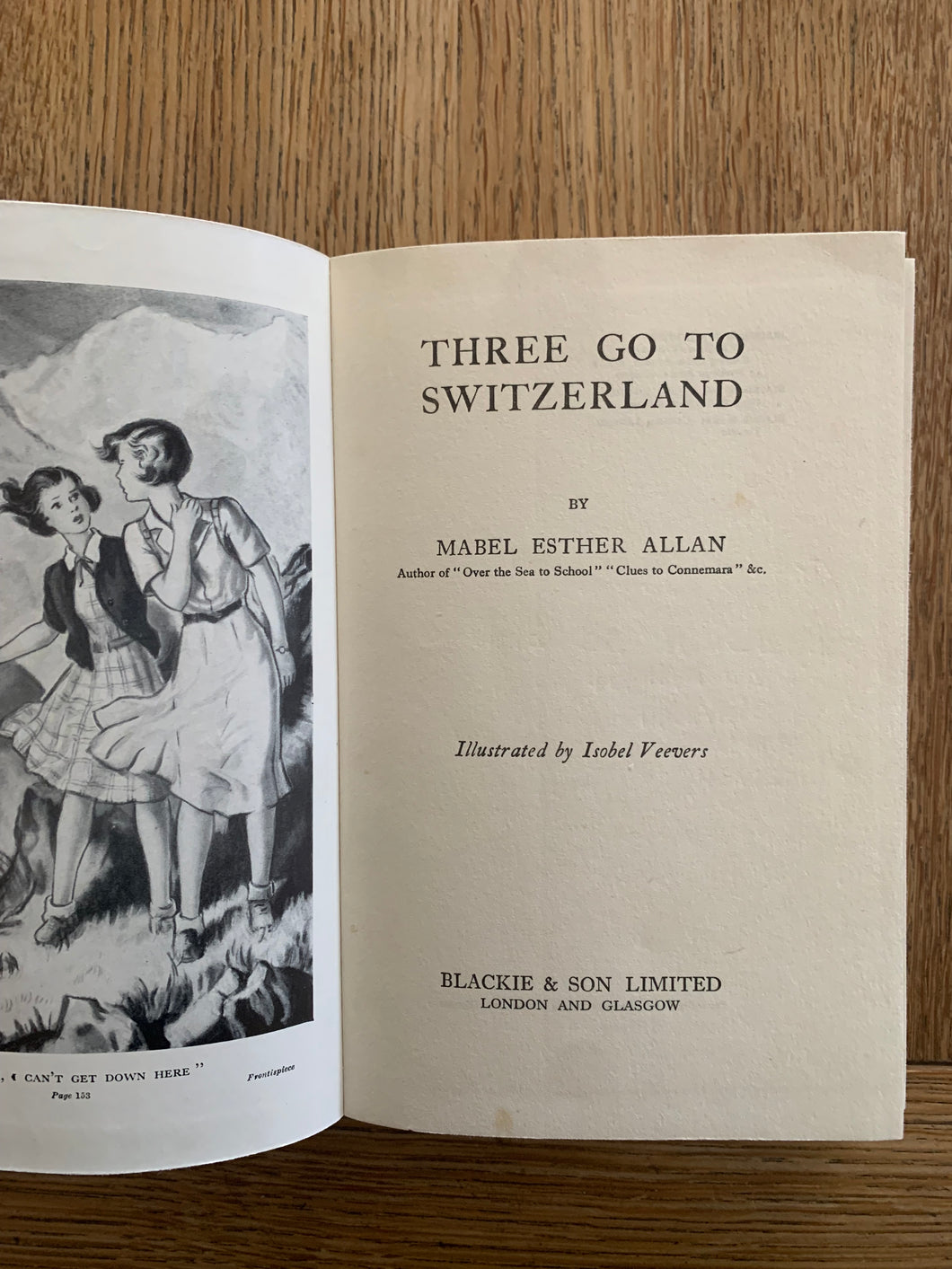 'Three Go To Switzerland' by Mabel Esther Allan. Illustrated by Isobel Veevers. Published by Blackie. No date. UK 1st edition.