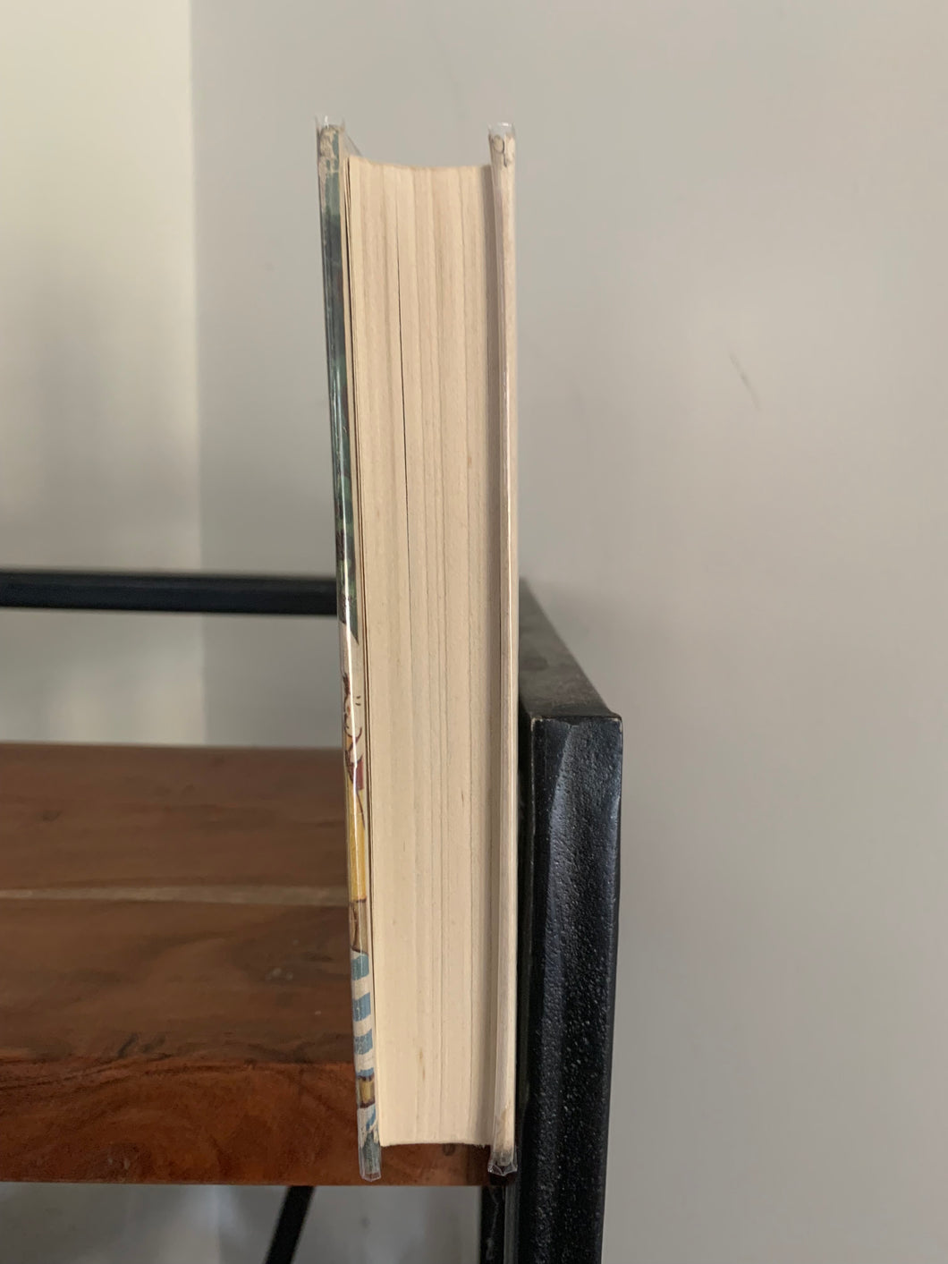 The dust wrapper is in very good condition and is price clipped, with light wear and loss to the top/base of the spine and corners. The top edge of the front cover has a small piece missing, and there is a small stain at the very bottom corner of the fore-edge, which runs into the rear inside flap. The wrapper comers in a clear unattached protective cover.