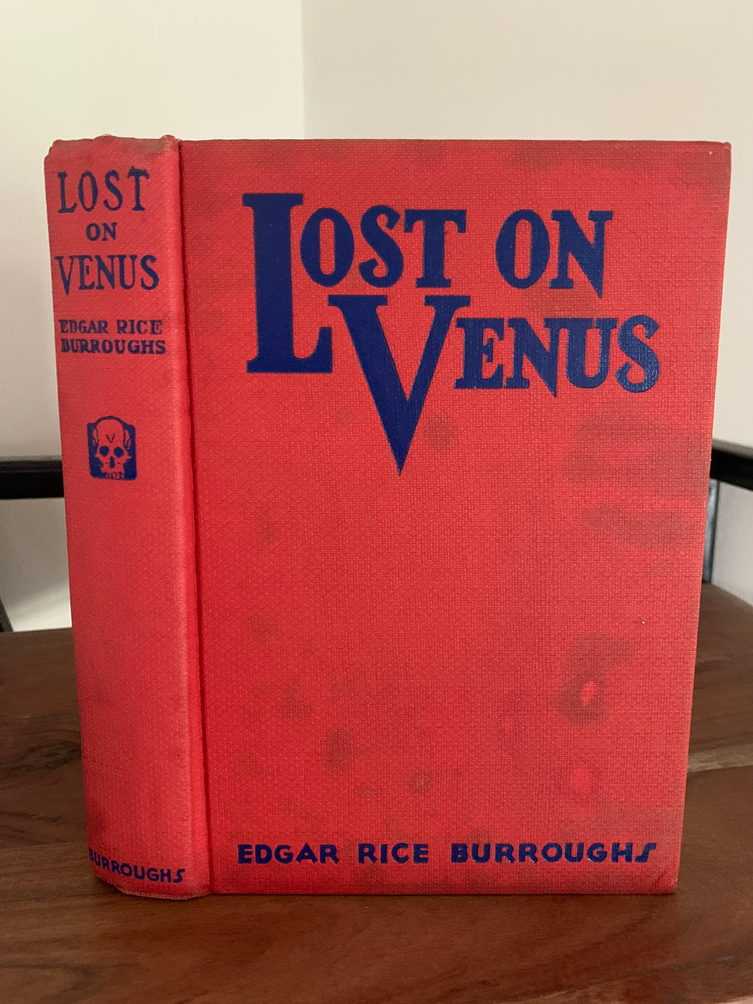 ’Lost on Venus’ by Edgar Rice Burroughs. Frontispiece illustrated by J. Allen St. John. Published by Burroughs. 1935. Early US reprint edition.
