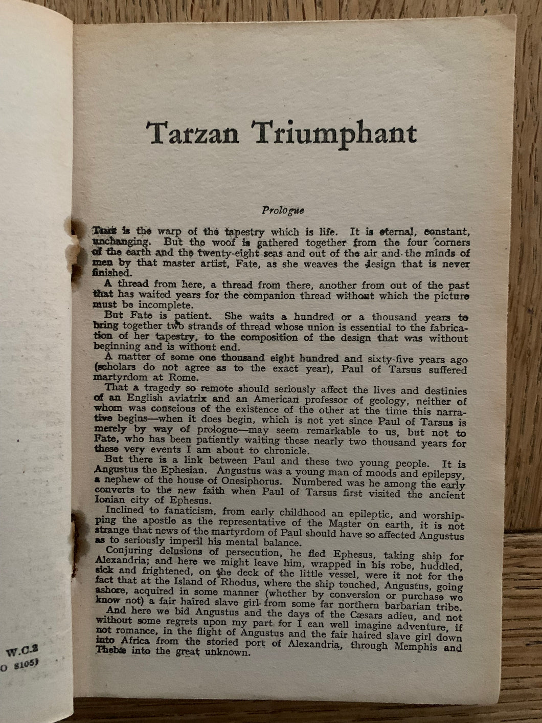 ’Tarzan Triumphant’ by Edgar Rice Burroughs. Published by Mark Goulden. Undated. UK paperback edition. Card covers.
