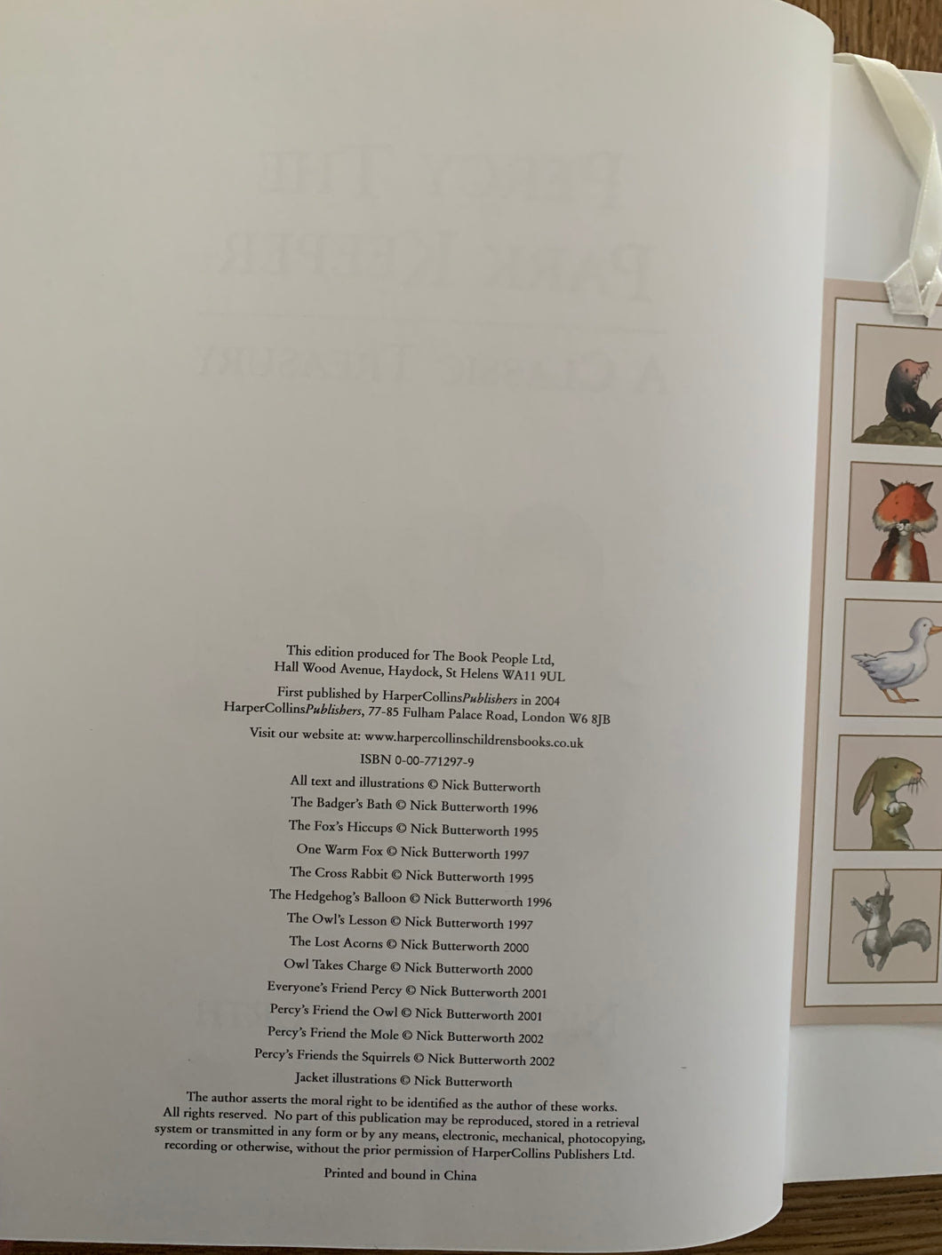 ’Percy The Park Keeper - A Classic Treasury’ by written and illustrated by Nick Butterworth. Published by Ted Smart. 2004. UK Book Club edition. Laminated pictorial boards with matching dust wrapper. Complete with attached Percy bookmark.
