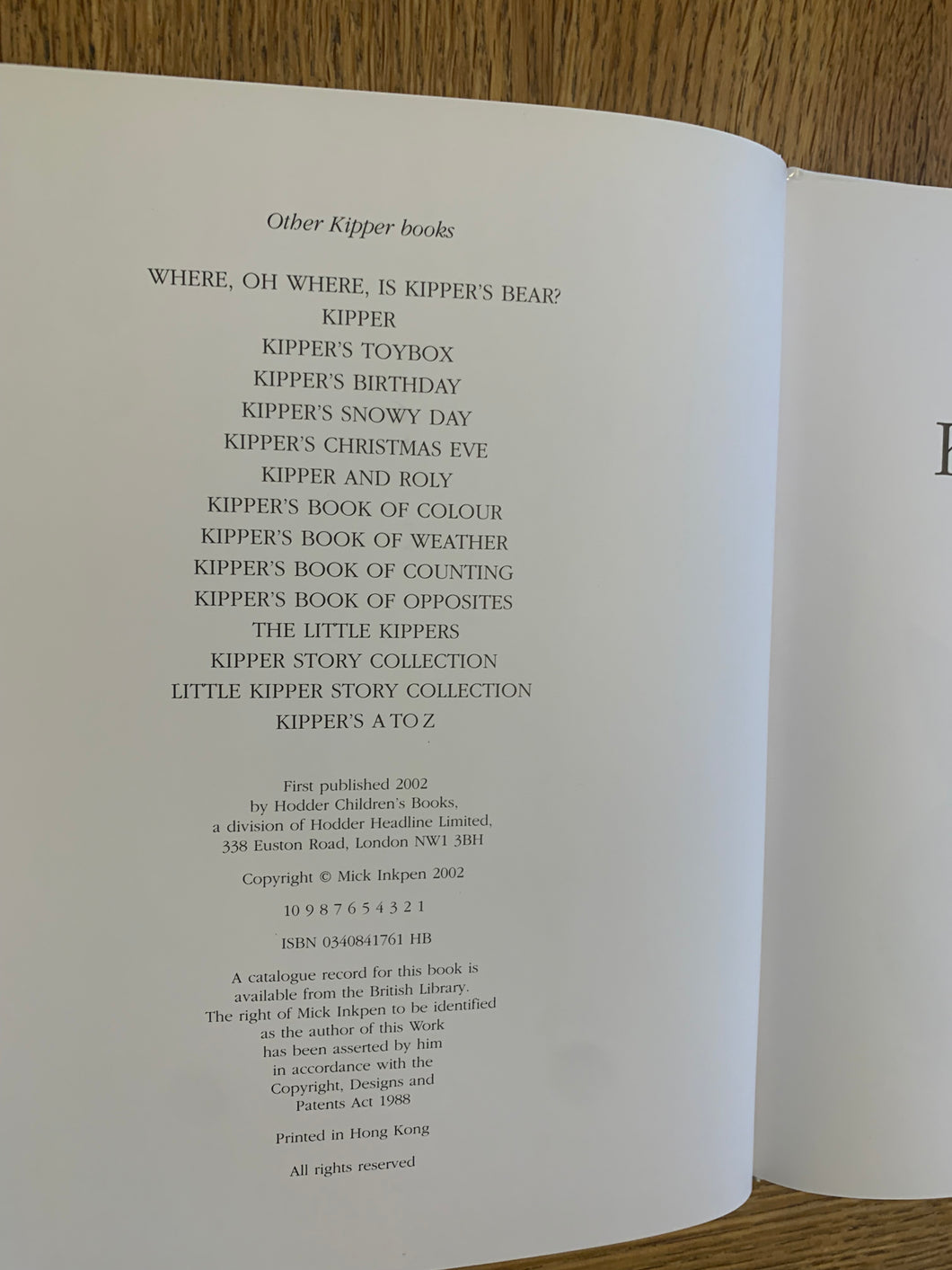 ‘Kipper's Monster’ written and illustrated by Mick Inkpen. Published by Hodder. 2002. UK 1st edition. Laminated pictorial boards. No dust wrapper as issued.