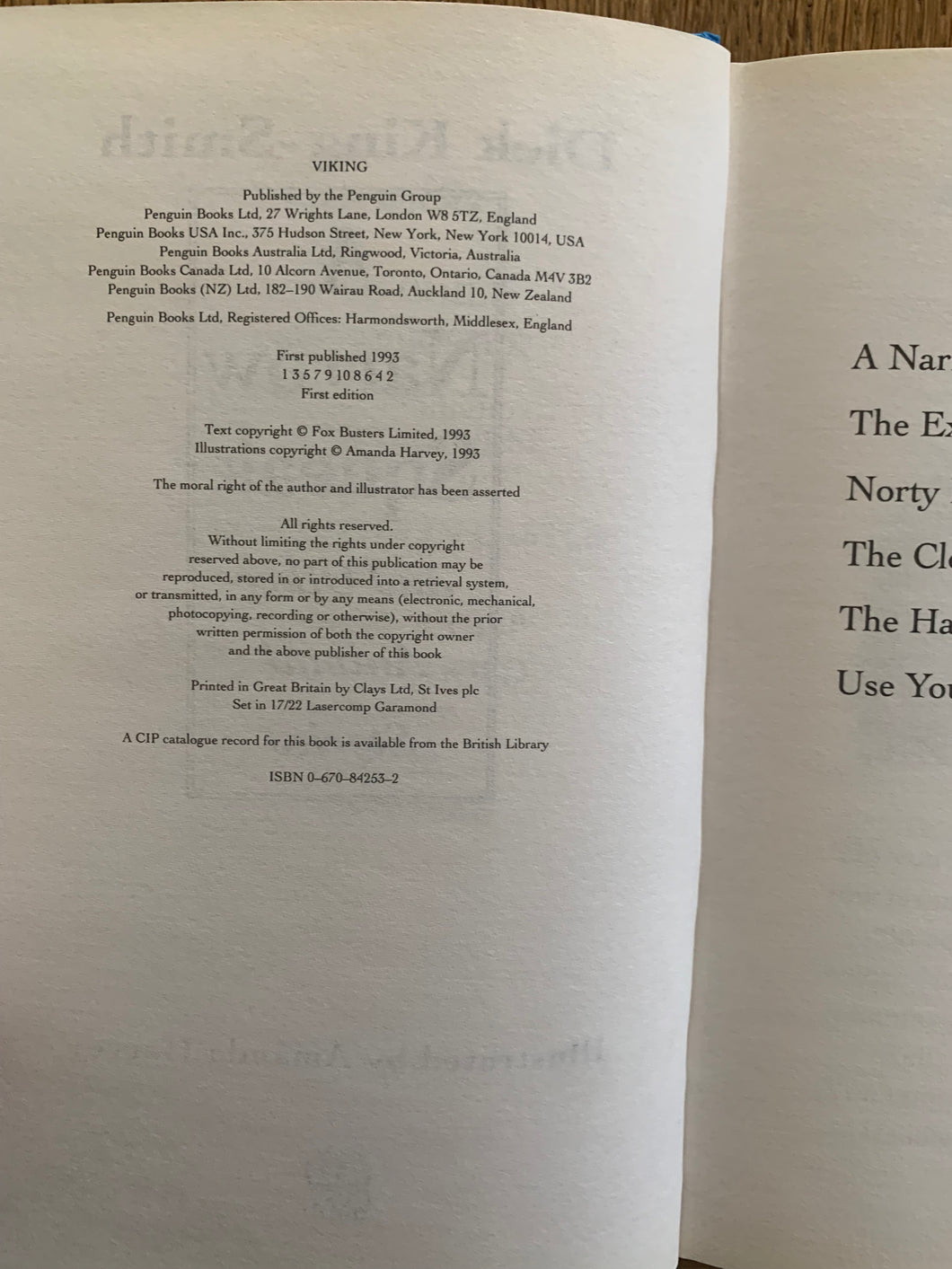 A Narrow Squeak and Other Animal Stories’ by Dick King-Smith. Illustrated by Amanda Harvey. Published by Viking. 1993. UK 1st edition.