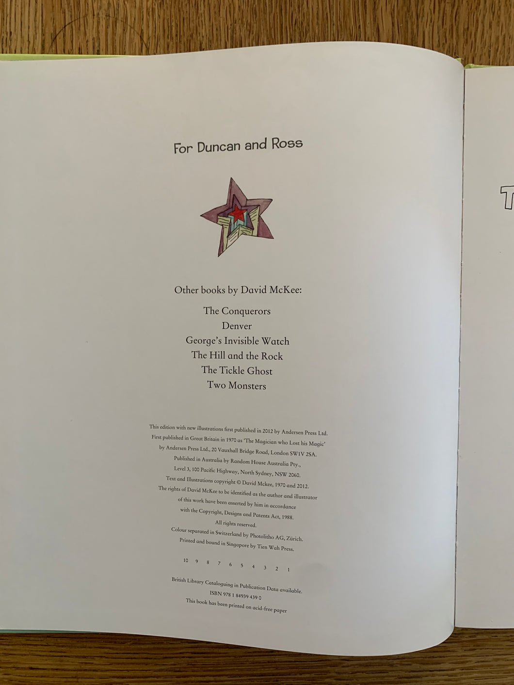‘Melric the Magician Who Lost His Magic' written and illustrated by David McKee. Published by Anderson Press. UK 1st edition thus. 2015. Laminated pictorial boards. No dust wrapper as issued. Originally published in 1970, this new edition features new illustrations.