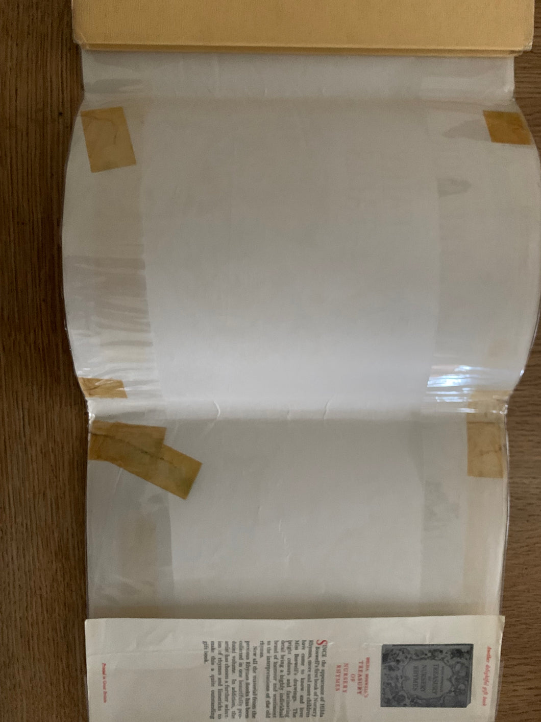 The dustwrapper is in very good condition and is price clipped. There are repaired tears by the previous owner using sellotape on the reverse side of the wrapper to the top/base of the front and rear covers, and spine. The wrapper comes with an unattached clear protective cover.
