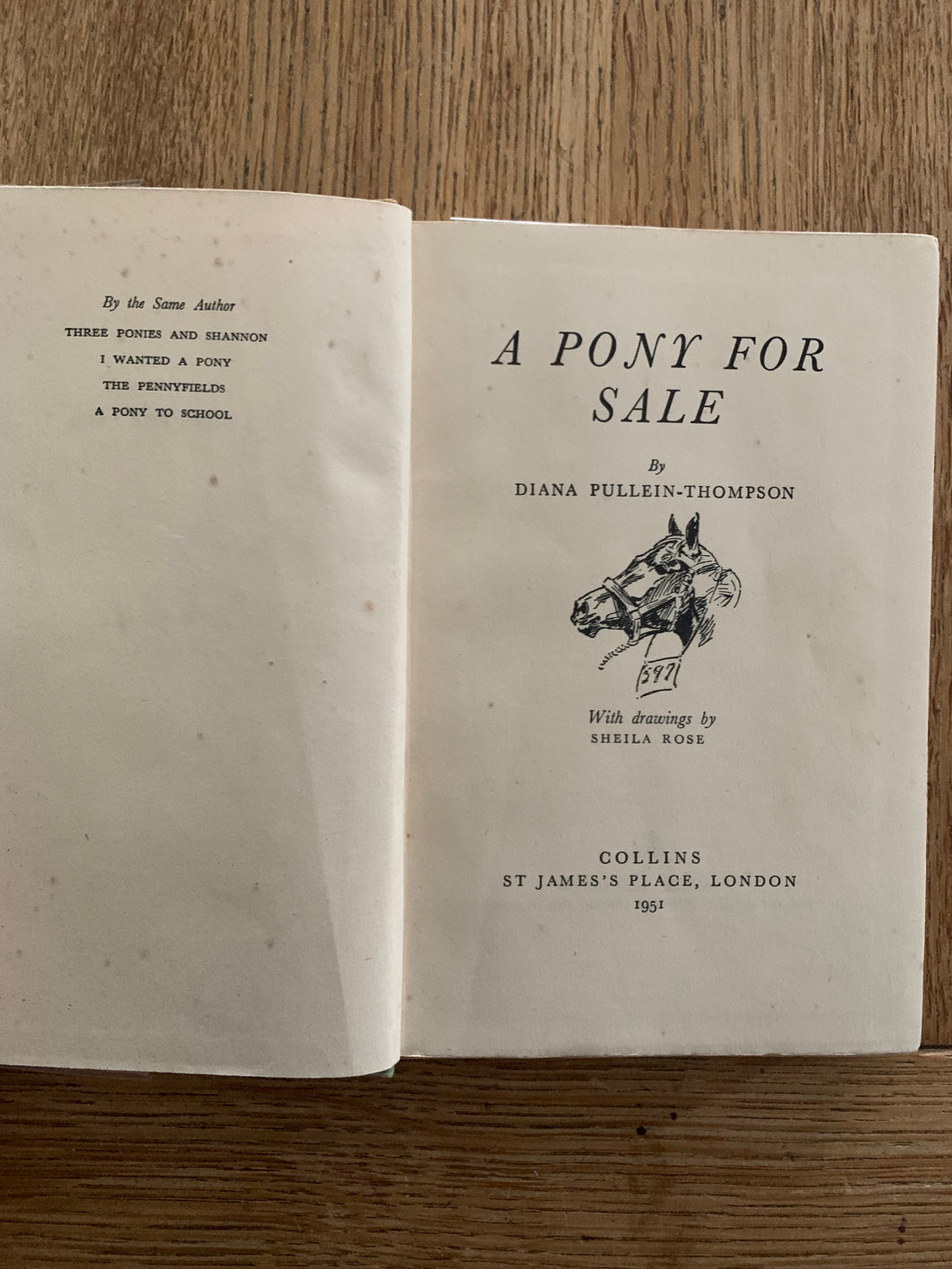 ‘A Pony For Sale' by Diana Pullein-Thompson. Illustrated by Sheila Rose. Published by Collins. 1951. UK 1st edition.