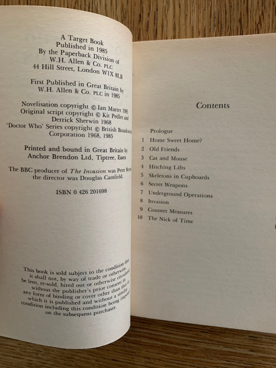 'Doctor Who - The Invasion' by Ian Marter. Published by W.H.Allen. 1985. UK 1st edition. Card covers. A Target Book.