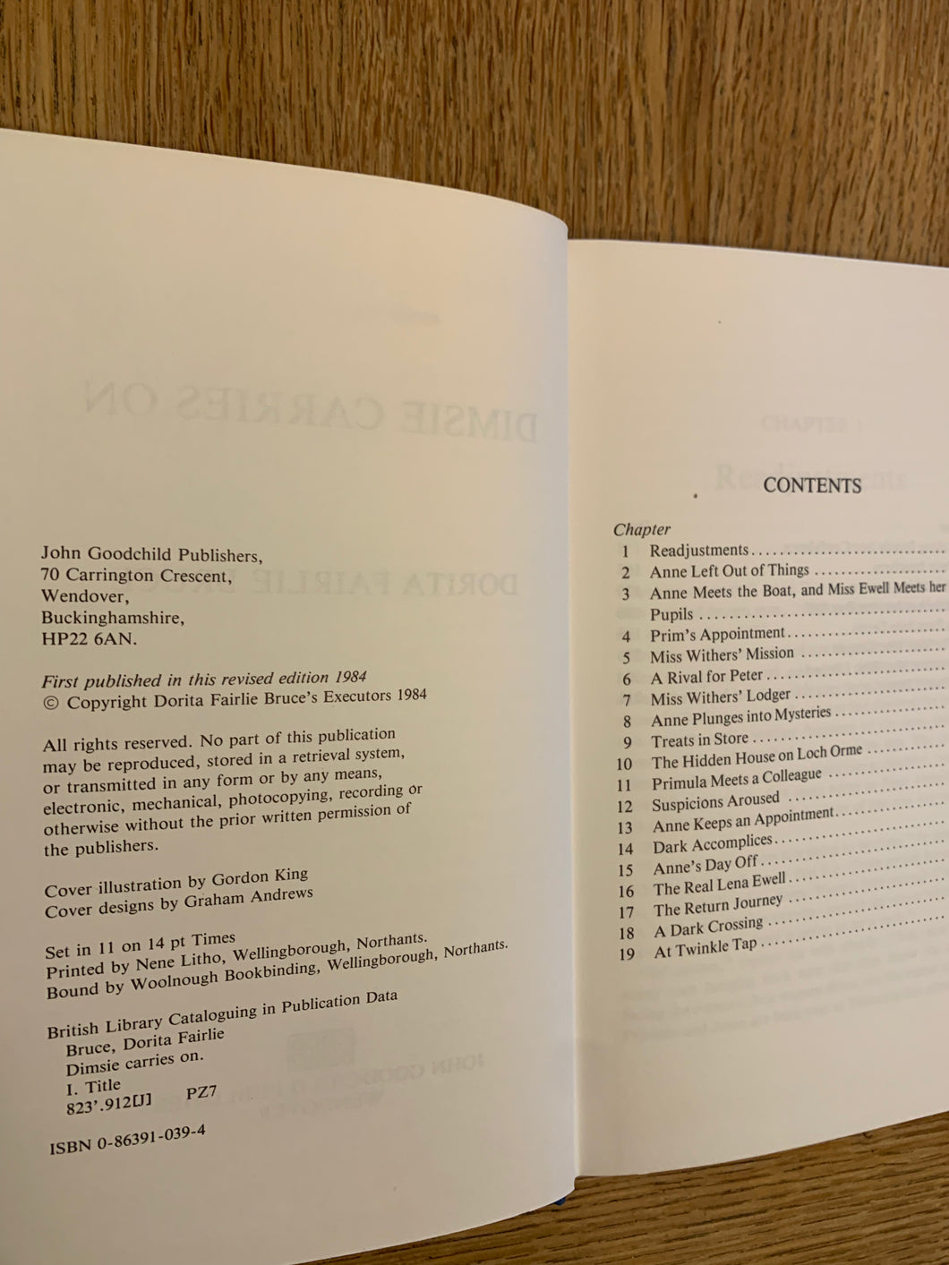 ‘Dimsie Carries on' by Dorita Fairlie Bruce. Published by John Goodchild Publishers. 1984. UK 1st revised edition.