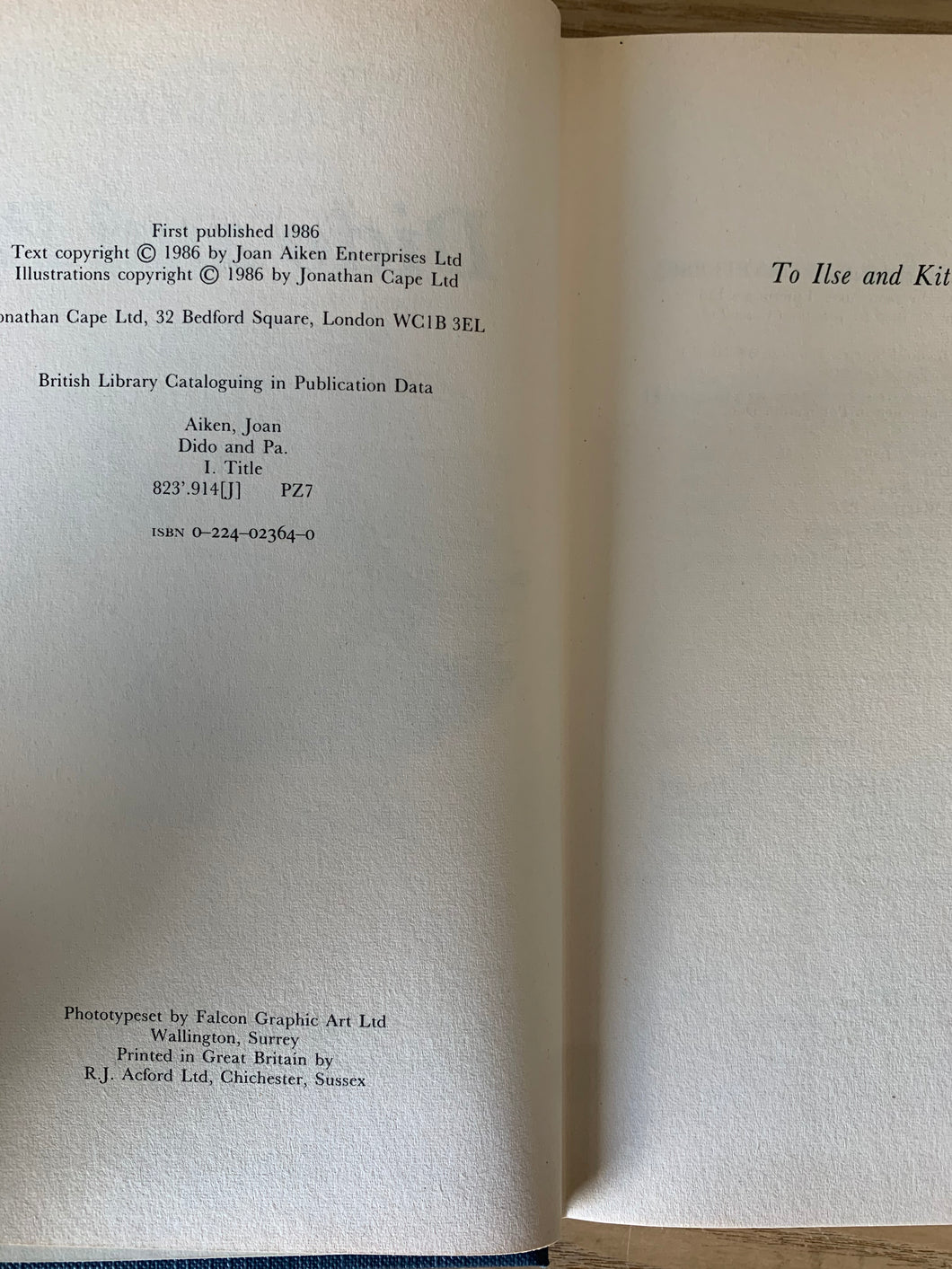 Dido and Pa' by Joan Aiken. Illustrated by Pat Marriott. Published by Cape. 1986. UK 1st edition.