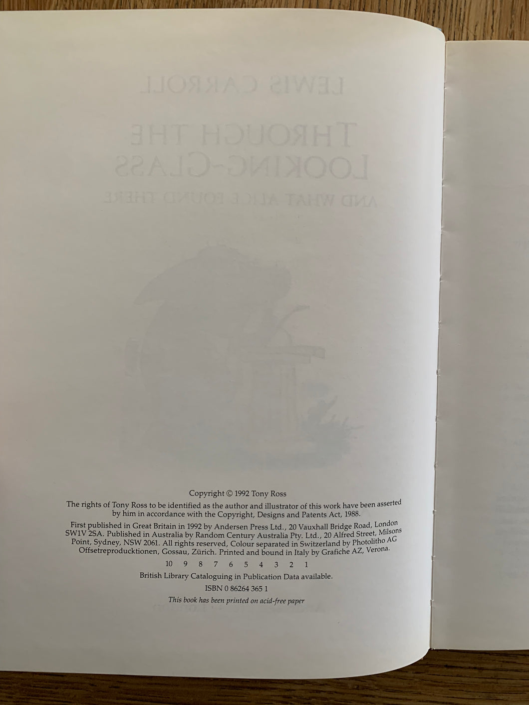 'Through the Looking Glass and What Alice Found There by Lewis Carroll. Abridged and illustrated by Tony Ross. Published by Anderson Press. 1992. UK 1st edition thus. Laminated pictorial boards. No dust wrapper as issued.