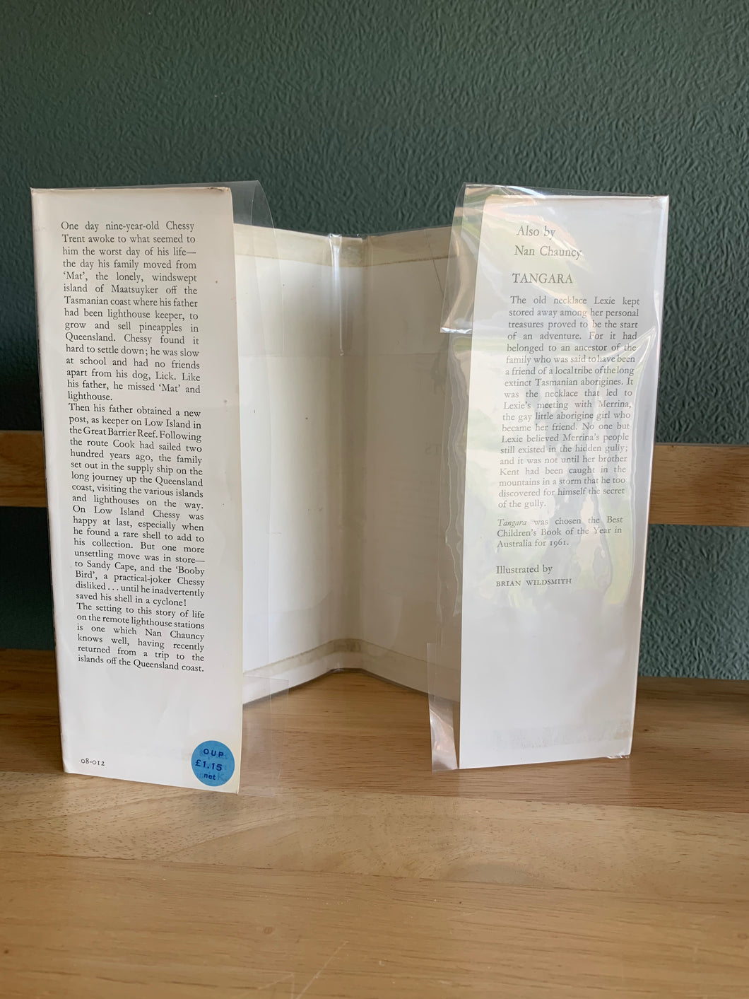 The dustwrapper is also in very good condition and is not price clipped, with a new publishers price label attached. The reverse side of the wrapper has tape attached along the top and bottom edges, which is visible on the rear cover and spine. There is a tear on the rear cover.