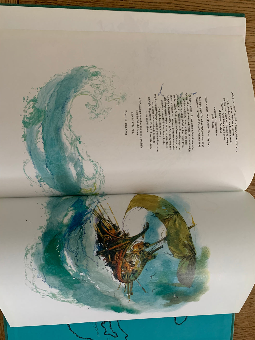 ’The Odyssey’ retold by Geraldine McCaughrean. Illustrated by Victor Ambrus. Published by OUP. 1993. UK 1st edition.