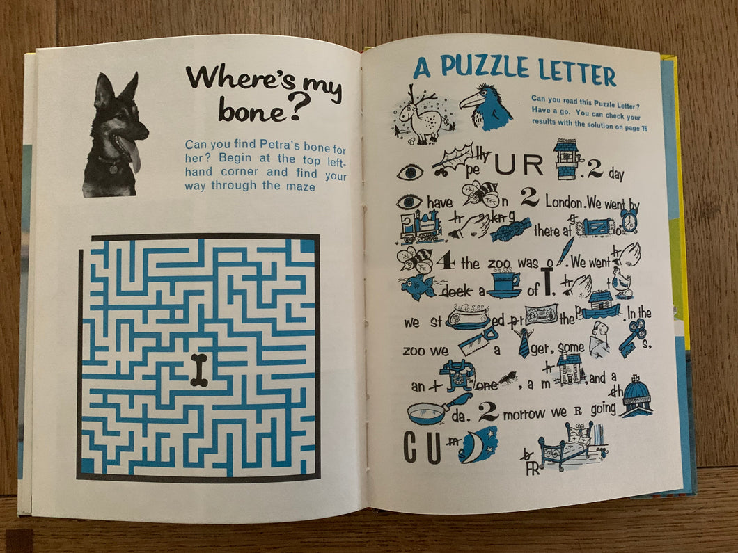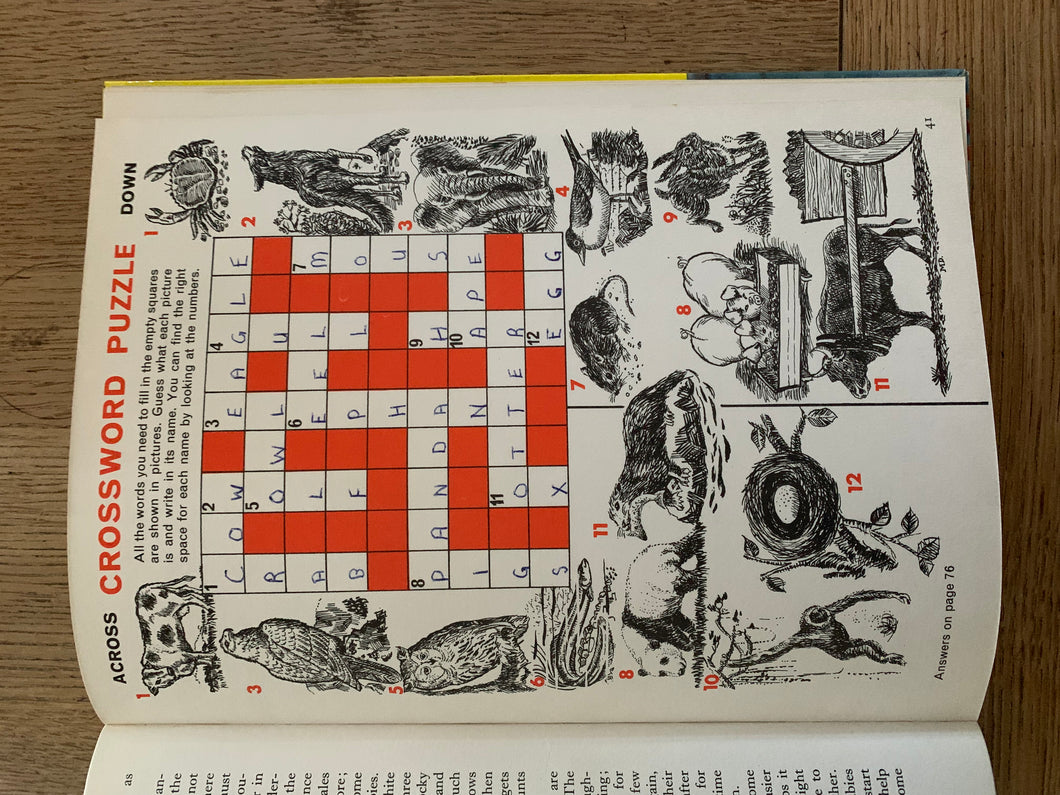 The book is in very good + condition with no marks, while the previous owner has completed the book belongs to section and written '1964 on the top edge of the inside cover page. The spine has light wear to the top and base, with some very light discolouration at the very top of the front cover/spine join. Only the crossword has been completed of the puzzles. The book is not price clipped.