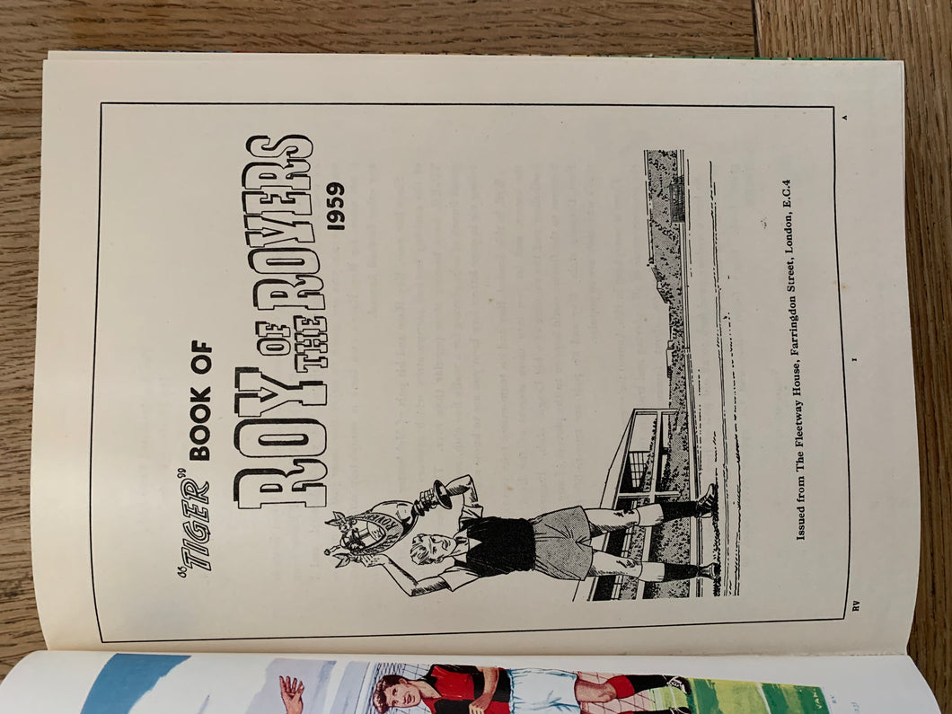 ‘Tiger Book of Roy of the Rovers 1959' Published by Amalgamated Press. 1958. UK 1st edition. Pictorial boards. No dust wrapper.