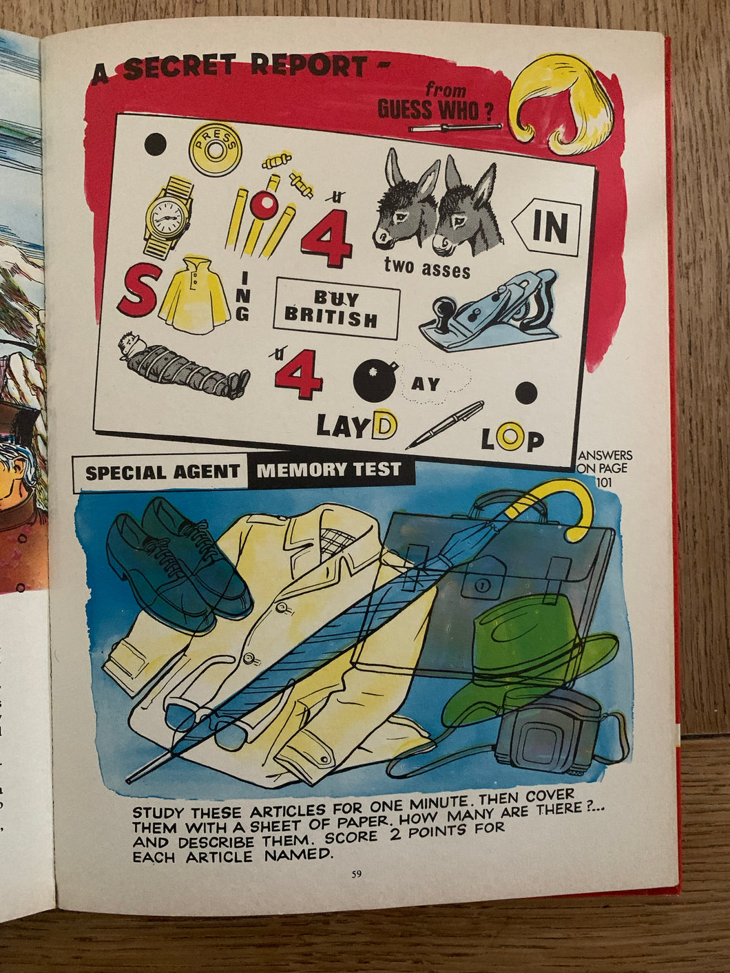 The book is in very good + condition with no marks with a gift inscription written on the top corner of the inside cover page. The top section of the frontis page is loose, but remains attached to the binding. The book is price clipped and none of the puzzles have been attempted.