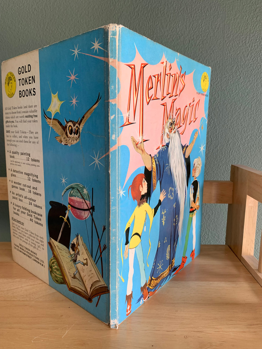 ‘Merlin’s Magic’ written and illustrated by Janet & Anne Grahame-Johnstone. Published by Young World Productions. No date. Presumed 1st edition. Pictorial boards. No dust wrapper as issued. A Gold Token Book. Large format.