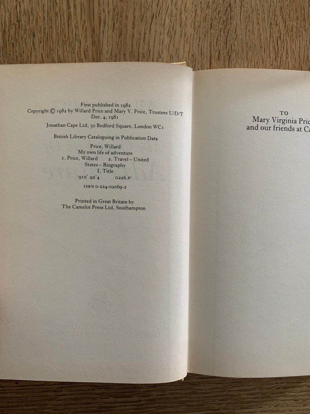 'My Own Life of Adventure' by Willard Price. Published by Cape. 1982. UK 1st edition.