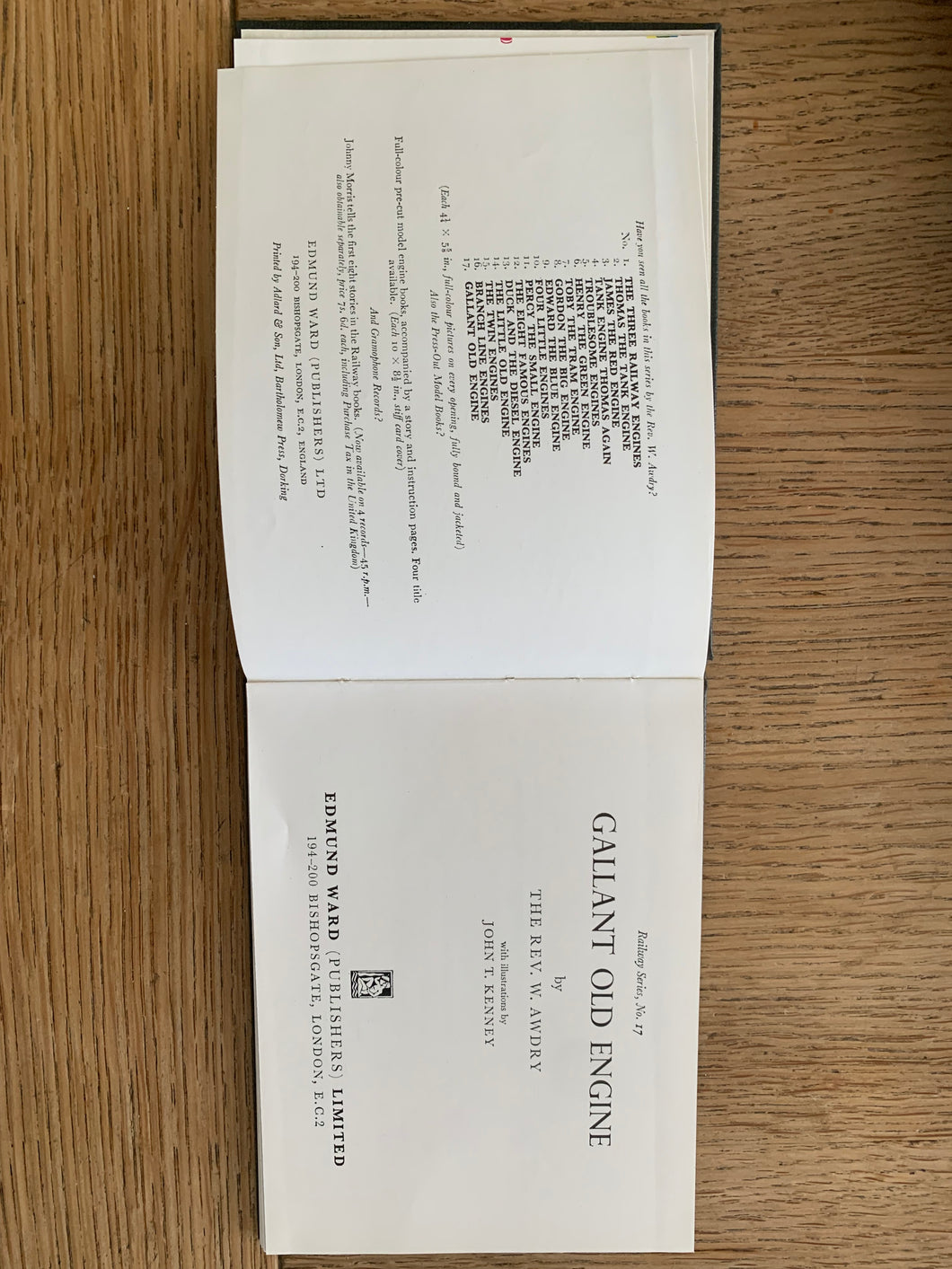 'Gallant Old Engine' by The Rev. W. Awdry. Illustrated by John T. Kenney. Published by Edmund Ward (Publishers) Limited. 1962. UK 1st edition.