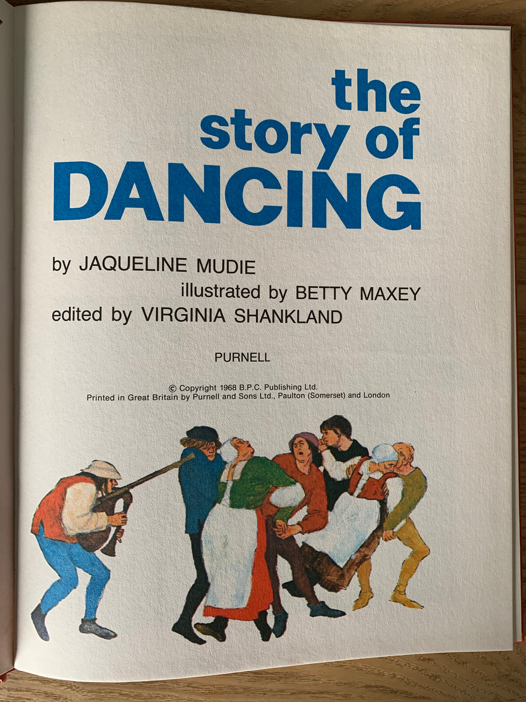 ‘The Story of Dancing’ by Jacqueline Mudie. Illustrated by Betty Maxey. Published by Purnell. 1968. UK 1st edition. Laminated pictorial boards. No dust wrapper as issued. Large format.