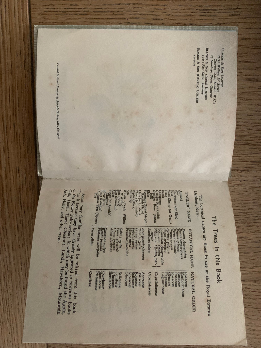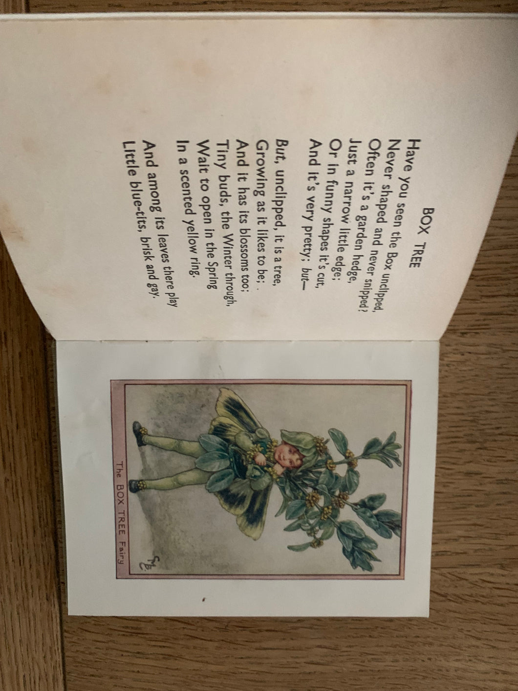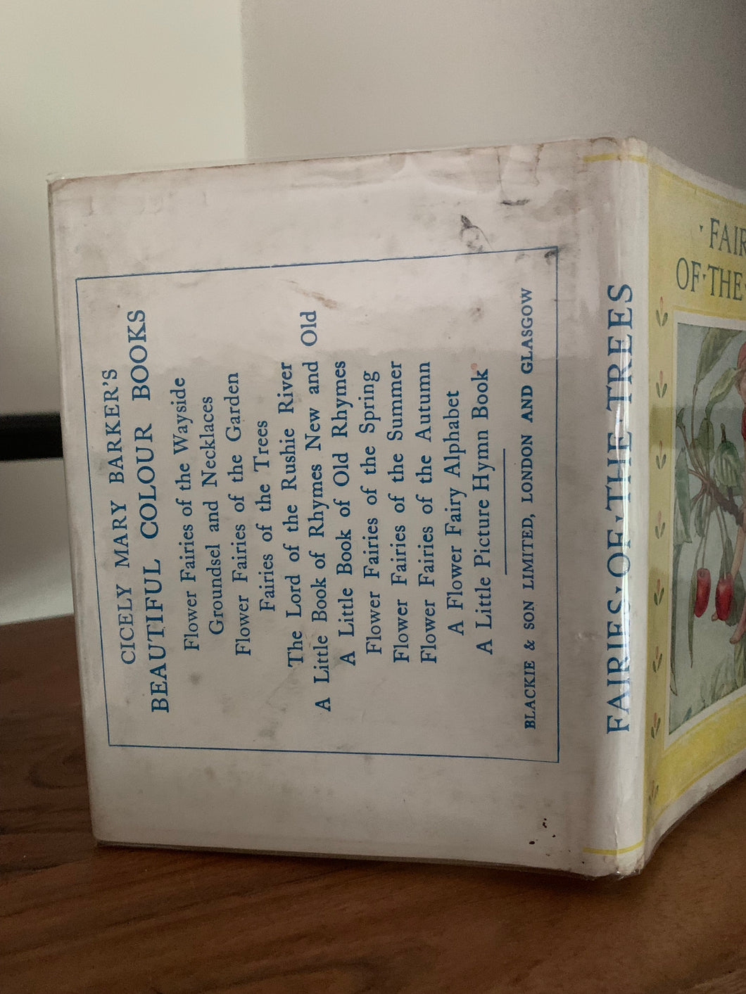 'Fairies of the Trees' story and pictures by Cicely Mary Barker. Published by Blackie. Undated. Picture onlay to the front cover. 3/- price. Small format.