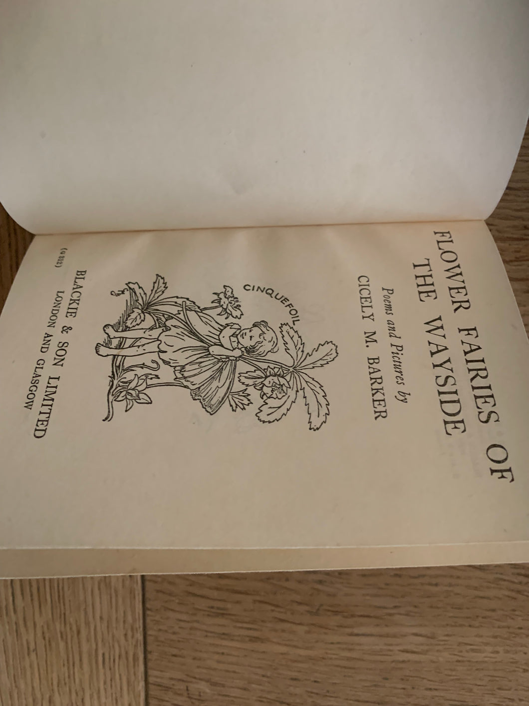 'Flower Fairies of the Wayside' story and pictures by Cicely Mary Barker. Published by Blackie. Undated. Picture onlay to the front cover. Small format.