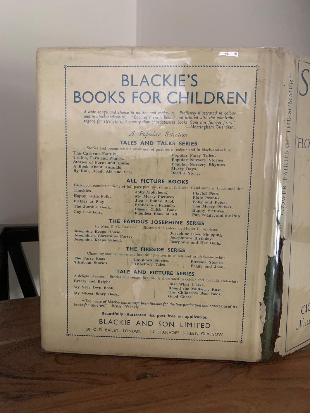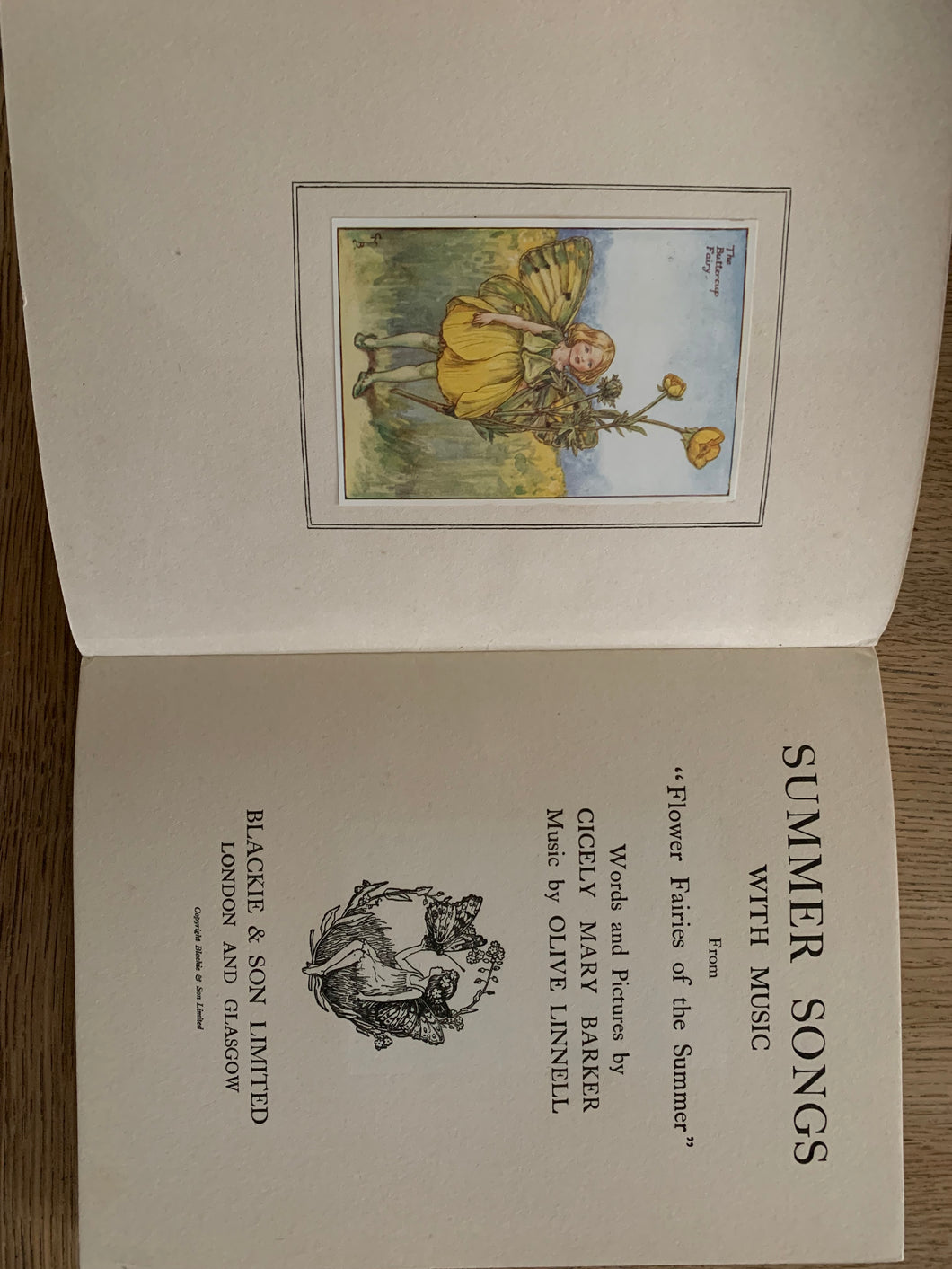 ’Summer Songs With Music from ‘Flower Fairies of the Summer’ Words & Pictures by Cicely Mary Barker. Music by Olive Linnell. Published by Blackie. No date. Pictorial boards.