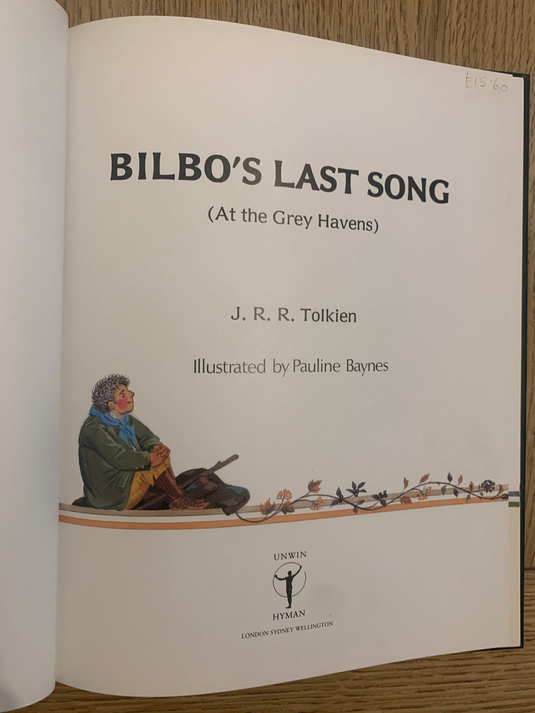 ‘Bilbo's Last Song’ by J.R.R. Tolkien. Illustrated by Pauline Baynes. Published by Unwin Hyman. 1990. UK 1st edition. Laminated pictorial boards with matching dust wrapper.