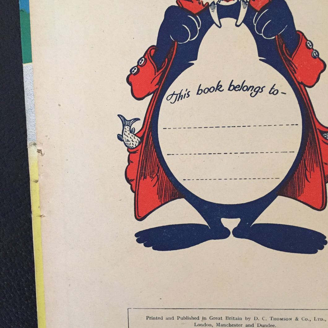 ‘The Magic-Beano Book 1949’ Published by D.C.Thompson. 1948. UK 1st edition. Pictorial boards. No dust wrapper as issued. The book is in very good condition, with no marks or inscriptions. The book belongs to section is clear. No colouring, writing etc and none of the puzzles have been attempted.  The pages are lightly tanned with age. The covers are a little dusty with some light wear to board edges. There is a scratch across the N on the front cover titles, and three puncture marks to the front edge. See image. A lovely bright well presented book both internally and externally. Scarce.