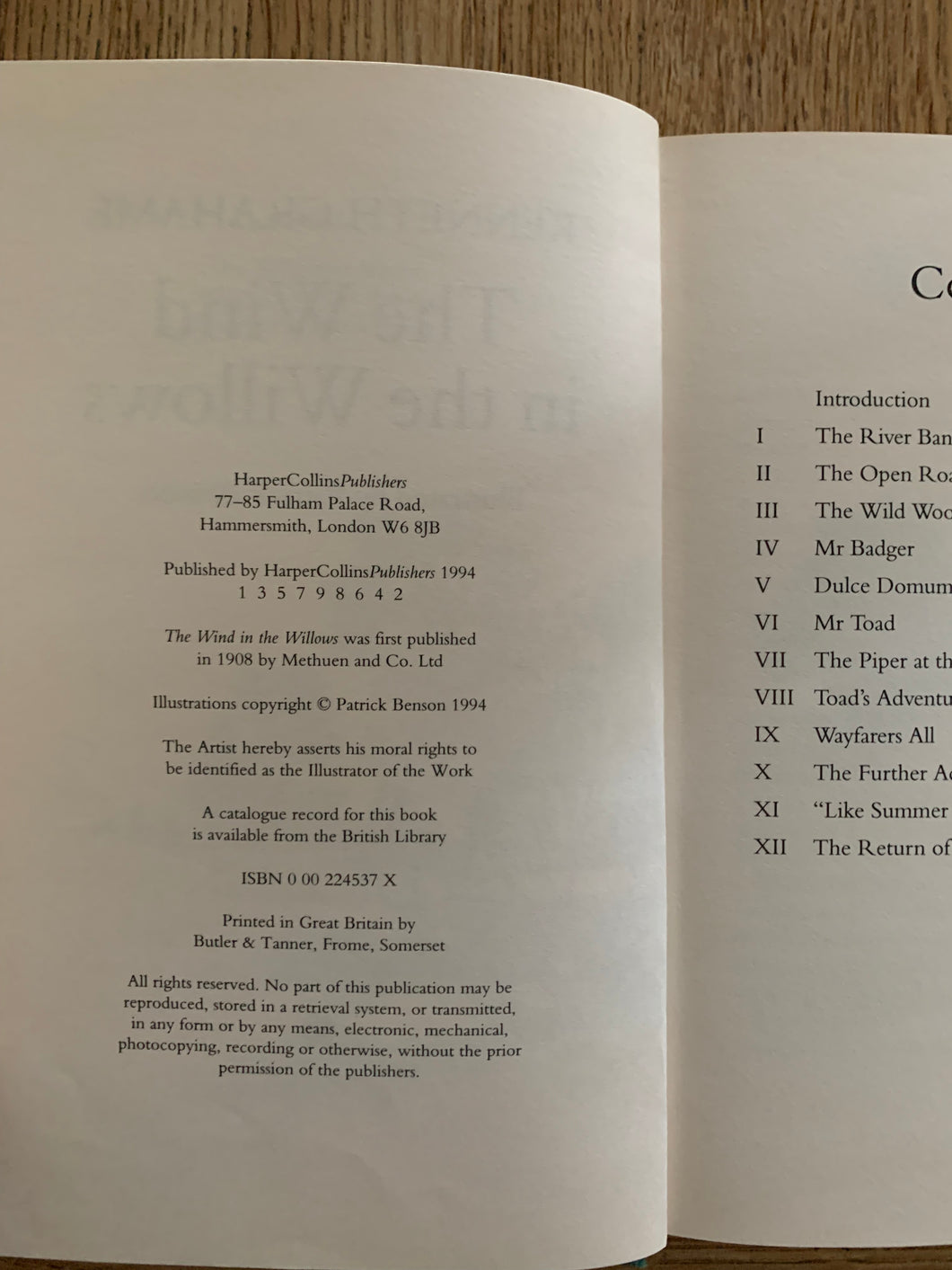 ‘The Wind in the Willows' by Kenneth Grahame. Illustrated by Patrick Benson. Published by Harper Collins. 1994. UK 1st edition thus.