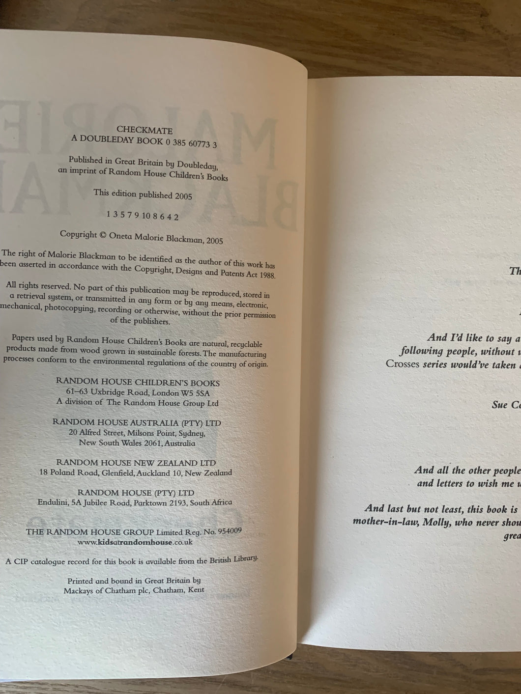 ‘Checkmate' by Malorie Blackman. Published by Doubleday. 2005. UK 1st edition.