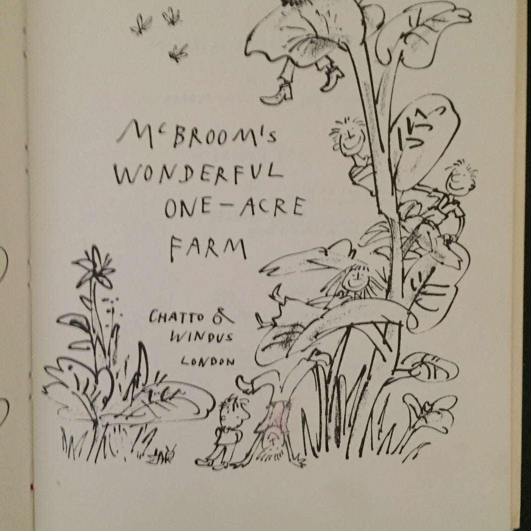 ’McBroom's Wonderful One-Acre Farm’ by Sid Fleischman. Illustrated by Quentin Blake. Published by Chatto & Windus. 1972. UK 1st edition. The book is in very good + condition with no marks or inscriptions. One very small part of the illustration on the title page has been coloured in faintly. The dust wrapper is in very good + condition and is not price clipped. The rear cover is a little dusty. A scarce early example of Quentin Blakes wonderfully unique illustrations.