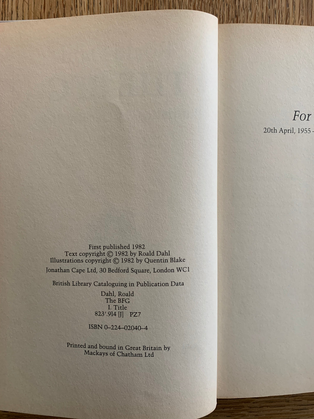 ‘The BFG' written by Roald Dahl. Illustrated by Quentin Blake. Published by Jonathan Cape. 1982. UK 1st edition.