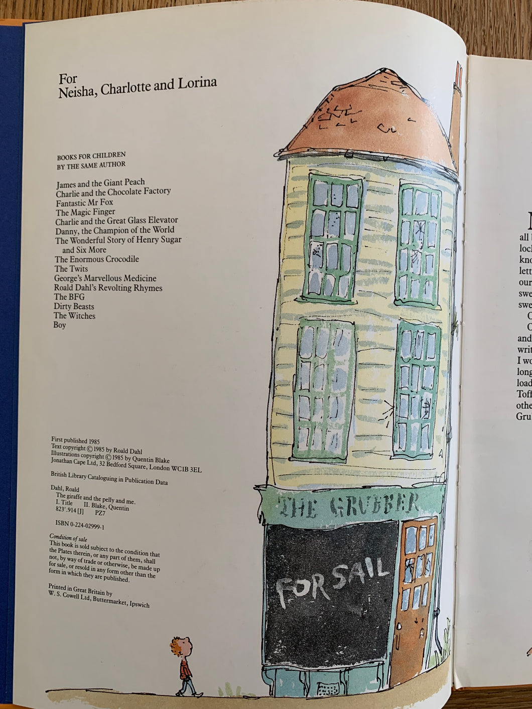‘The Giraffe and the Pelly and Me' written by Roald Dahl. Illustrated by Quentin Blake. Published by Jonathan Cape. 1985. UK 1st edition. Laminated pictorial boards. No dust wrapper as issued.
