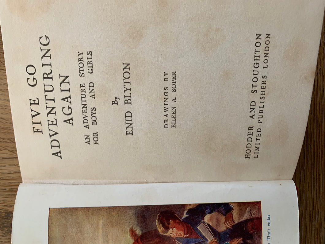 ’Five Go Adventuring Again’ by Enid Blyton. Illustrated by Eileen Soper. Published by Hodder & Stoughton. August 1949. UK 3rd impression.