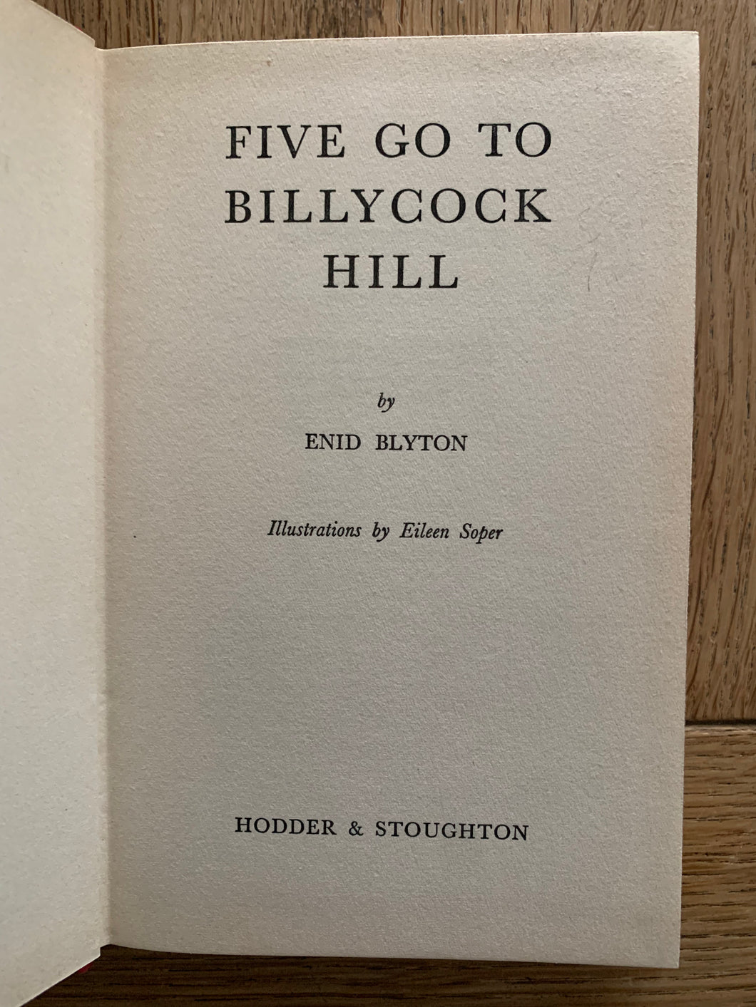 ’Five Go To Billycock Hill’ by Enid Blyton. Illustrated by Eileen Soper. Published by Hodder & Stoughton. 1957. UK 1st edition.