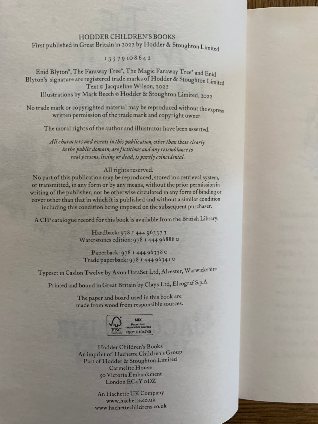 ‘The Magic Faraway Tree - A New Adventure' by Jacqueline Wilson. illustrated by Mark Beech. Published by Hodder Children's Books. 2022. UK 1st edition. Illustrated boards in matching dust wrapper.