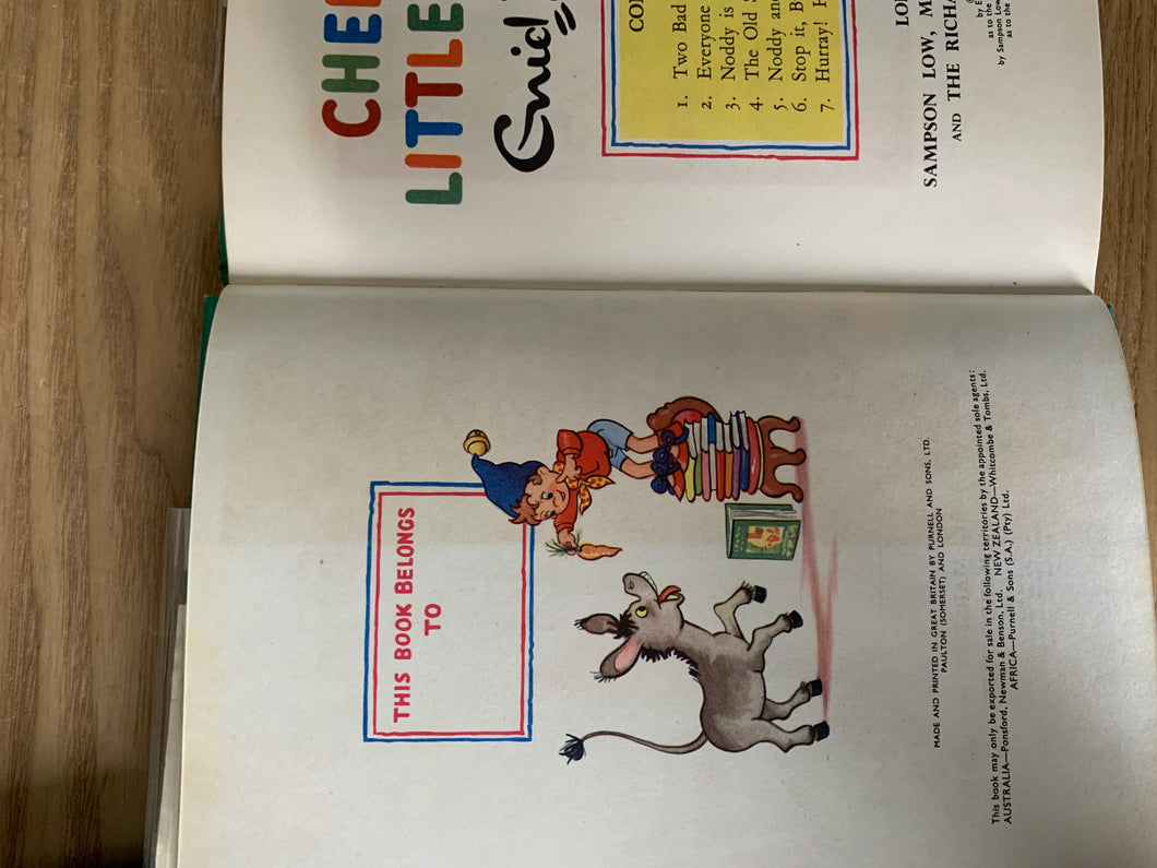 ‘Cheer Up, Little Noddy!’ by Enid Blyton. Published by Sampson Low, Marston & Co. and The Richard Press, Ltd. 1960. UK 1st edition. Pictorial boards with matching dust wrapper.