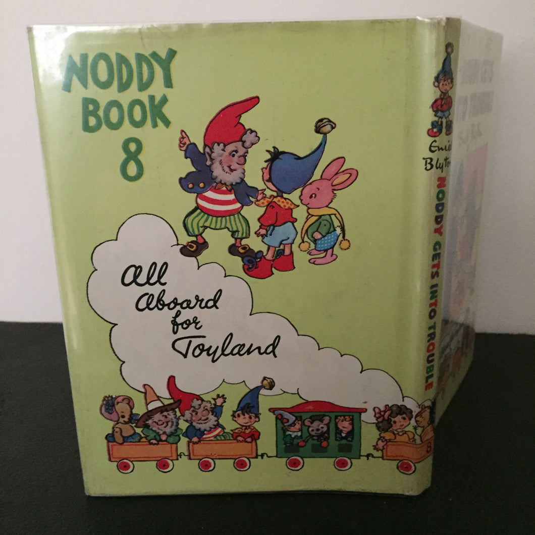 ‘Noddy Gets into Trouble' by Enid Blyton. Illustrated by Beek. Published by Sampson Low. No date. UK 1st edition. The book is in very good + condition with no marks or inscriptions. The book belongs to box is clear. Very light shelf wear to the base of the book. The dust wrapper is also in very good + condition and is not price clipped. There is some light creasing and wear to the edges and a small tear near the top of the front cover/spine join. There is a touch of foxing on the reverse top edge, which is not visible on the covers.