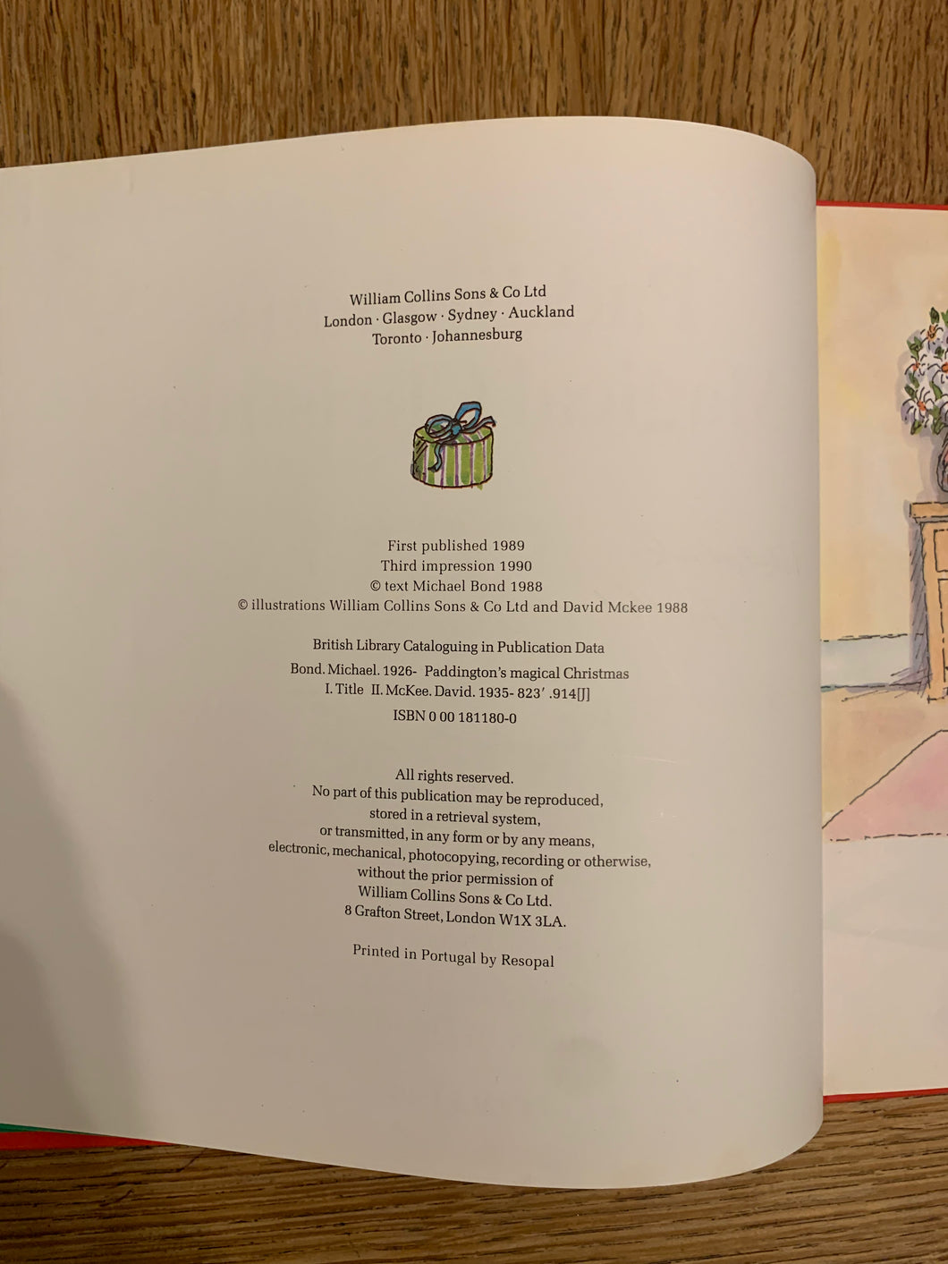 ‘Paddington's Magical Christmas' by Michael Bond. Illustrated by David McKee. Published by The Collins. 1990. UK 3rd impression. Laminated pictorial boards. No dust wrapper as issued.