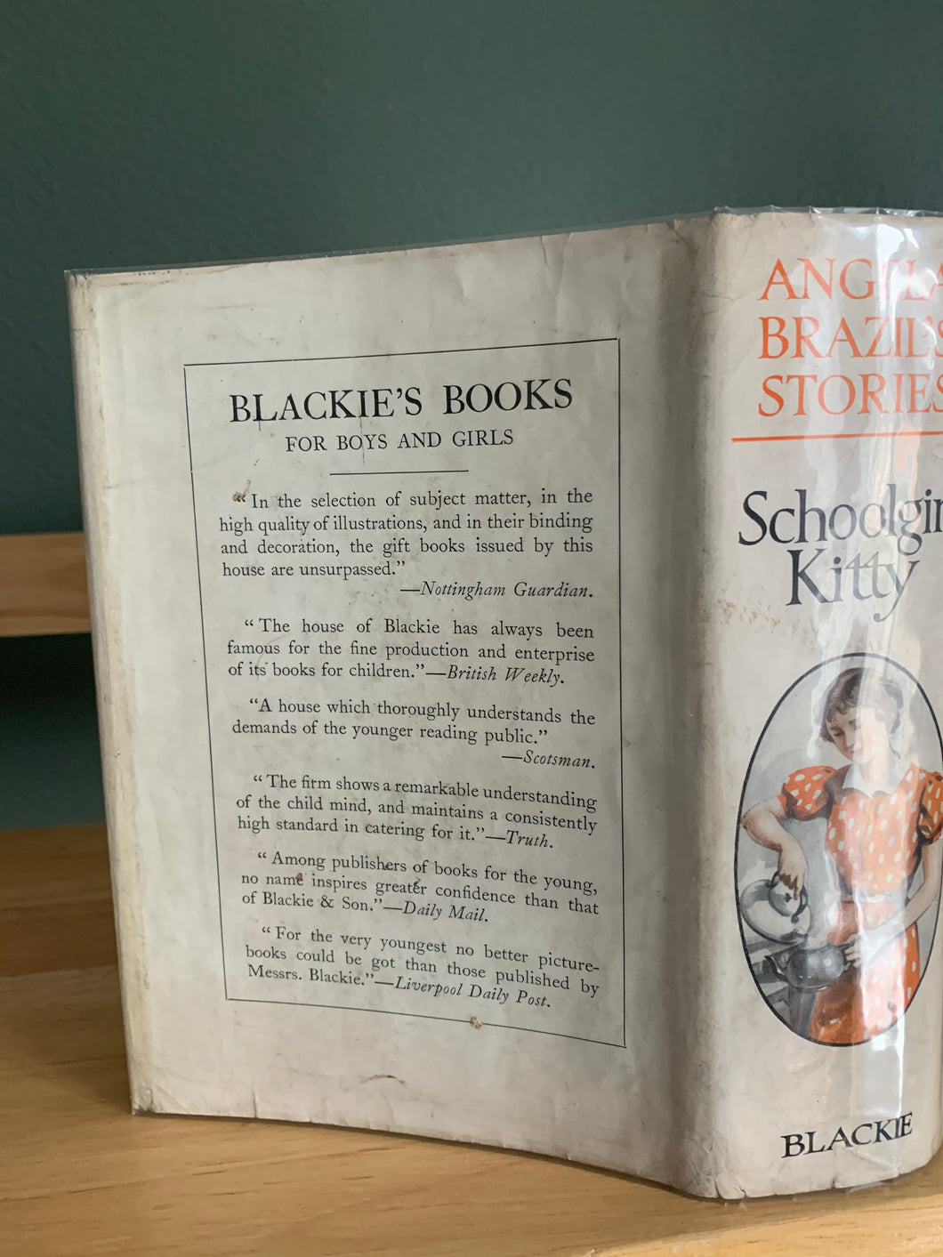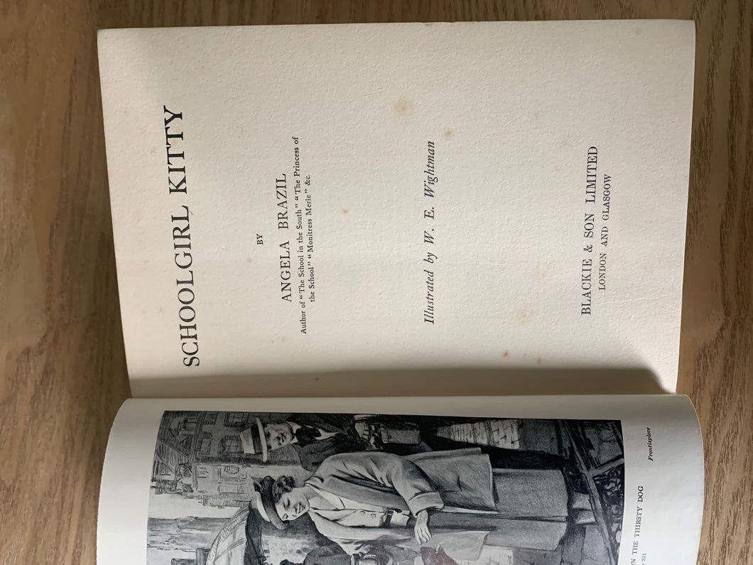 ‘Schoolgirl Kitty' by Angela Brazil. Illustrated by W.E. Wightman. Published by Blackie & Son. No date. Decorated boards.