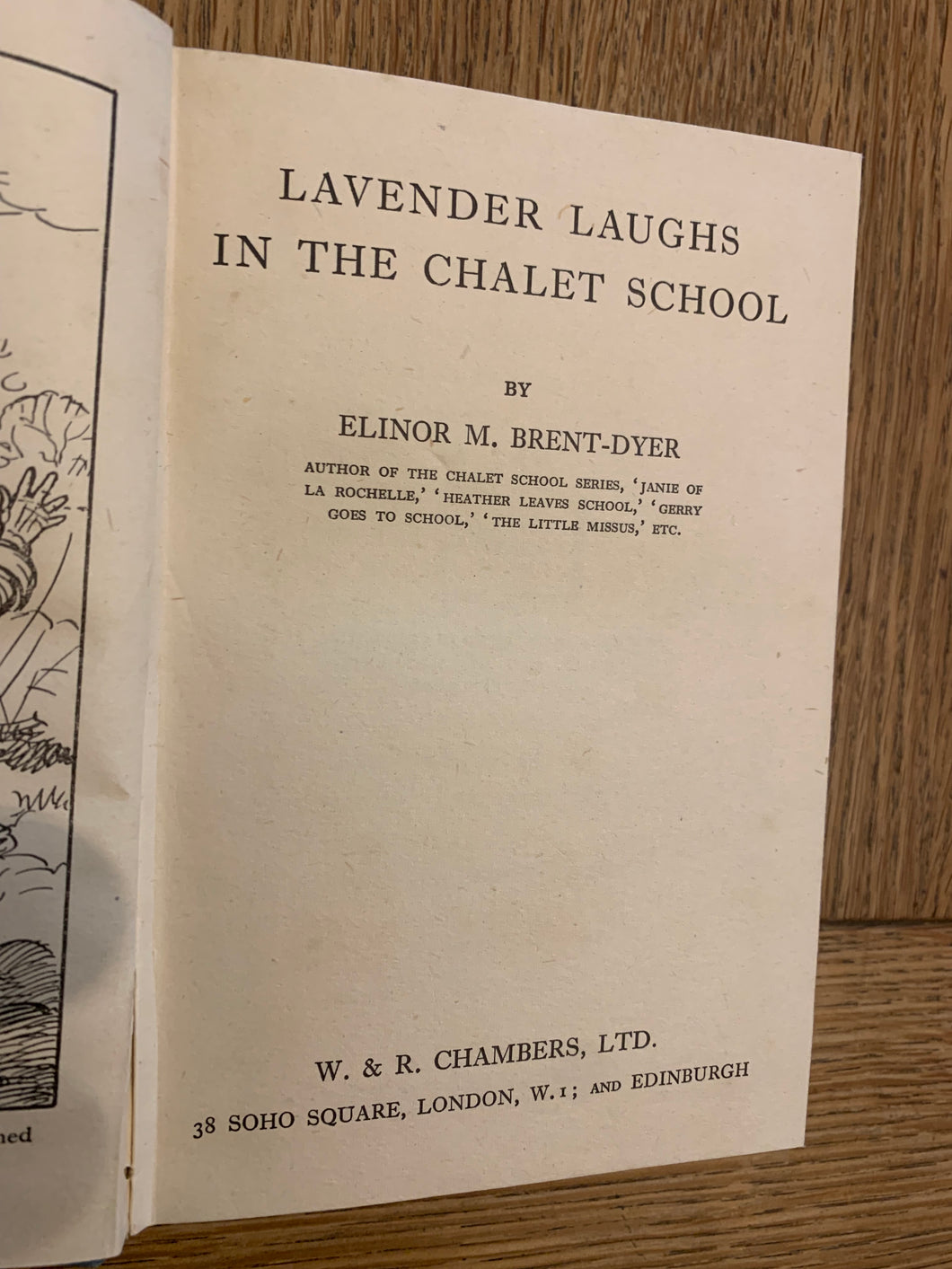 'Lavender Laughs in the Chalet School' by Elinor M. Brent Dyer. Illustrated by Nina K. Brisley. Published by Chambers. 1943. UK 1st edition.
