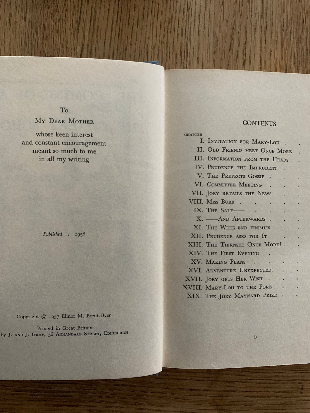 ‘The Coming of Age of the Chalet School' by Elinor M. Brent-Dyer. Published by Chambers. 1958. UK 1st edition.