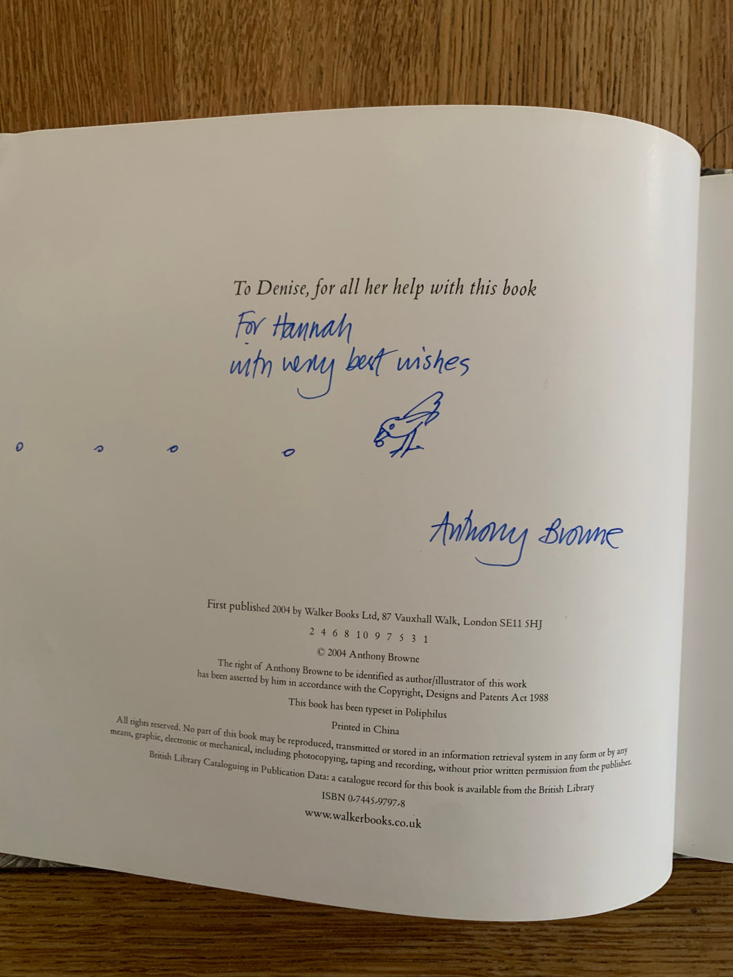 Signed and doodled by the author with a dedication to the publication page.