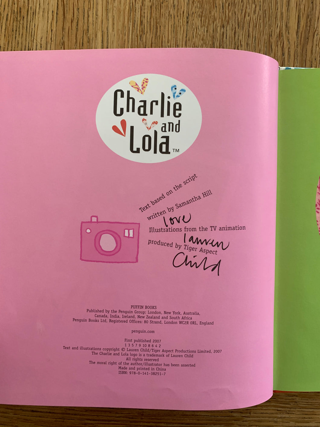 ‘Charlie and Lola: Say Cheese!’ by Lauren Child. Published by Puffin. 2007. UK 1st edition. Laminated pictorial boards. No dust wrapper as issued.