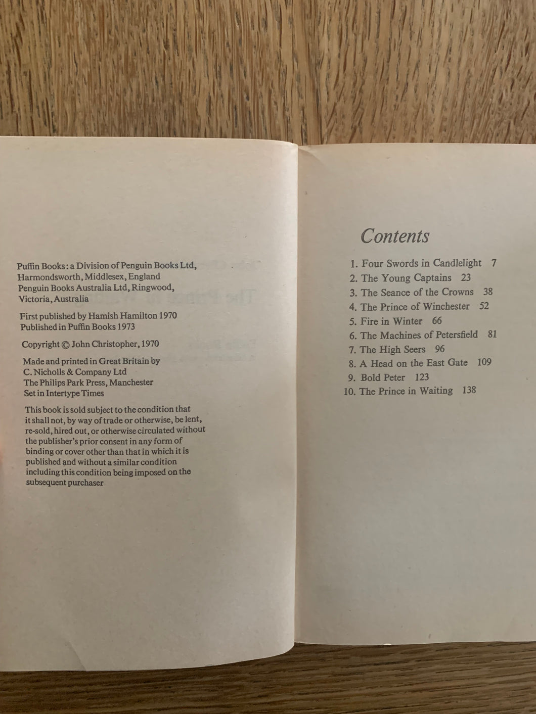 ‘The Prince in Waiting’ by John Christopher. Published by Penguin Books. 1973. UK 1st edition. Card Covers. A Puffin Book.