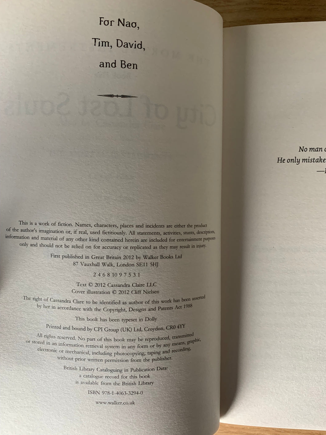 ‘City of Lost Souls’ by Cassandra Clare. Published by Simon & Schuster. 2012. UK 1st edition. Card Covers.
