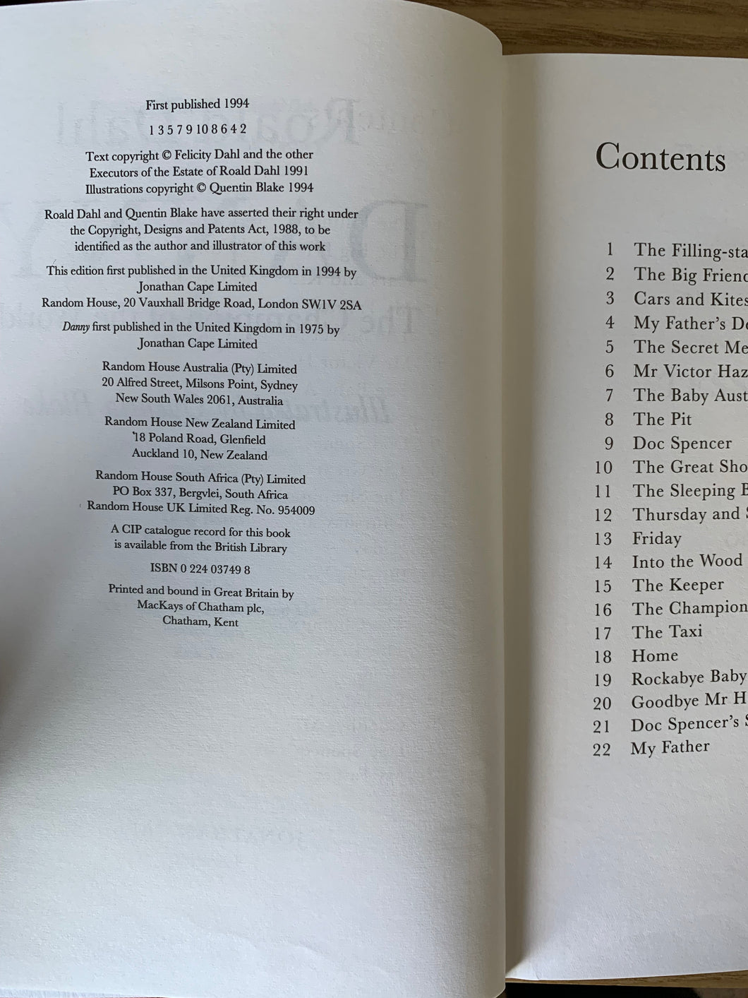 ’Danny - The Champion of The World’ by Roald Dahl. Illustrated by Quentin Blake. Published by Viking. 1994. UK 1st edition thus.