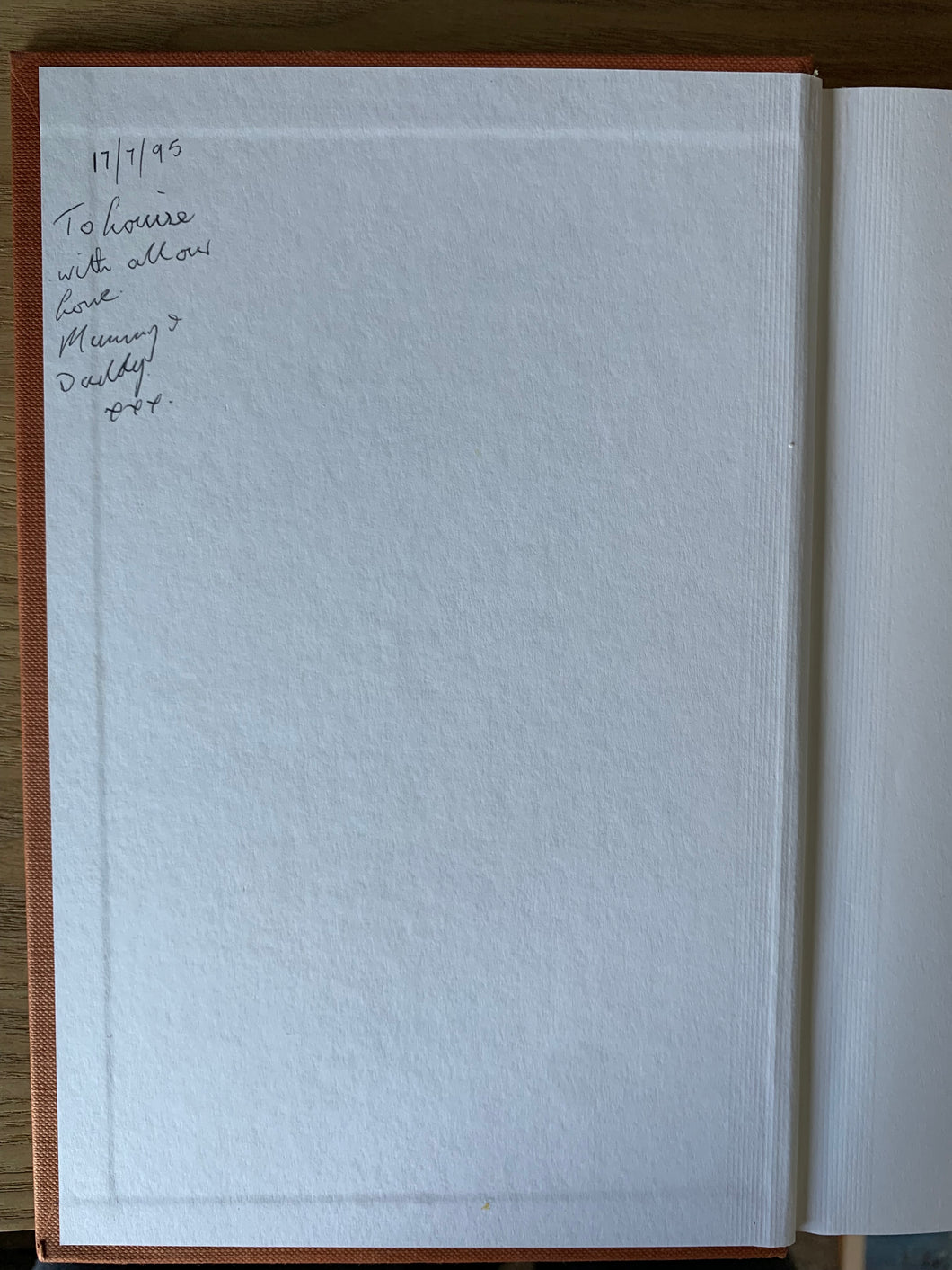 The book is in near fine condition with no marks and a small dated inscription on the very edge of the inside cover page, completely hidden by the inside flap.