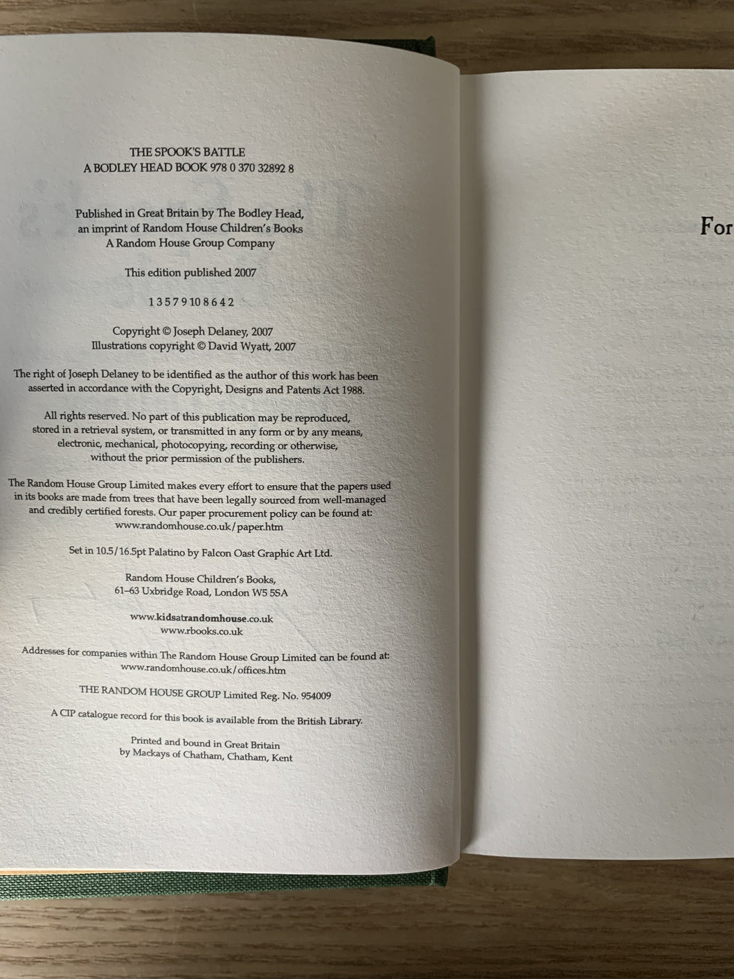 ‘The Spooks Battle’ by Joseph Delaney. Illustrated by David Wyatt. Published by Bodley Head. 2007. UK 1st edition. Book four of the Wardstone Chronicles.