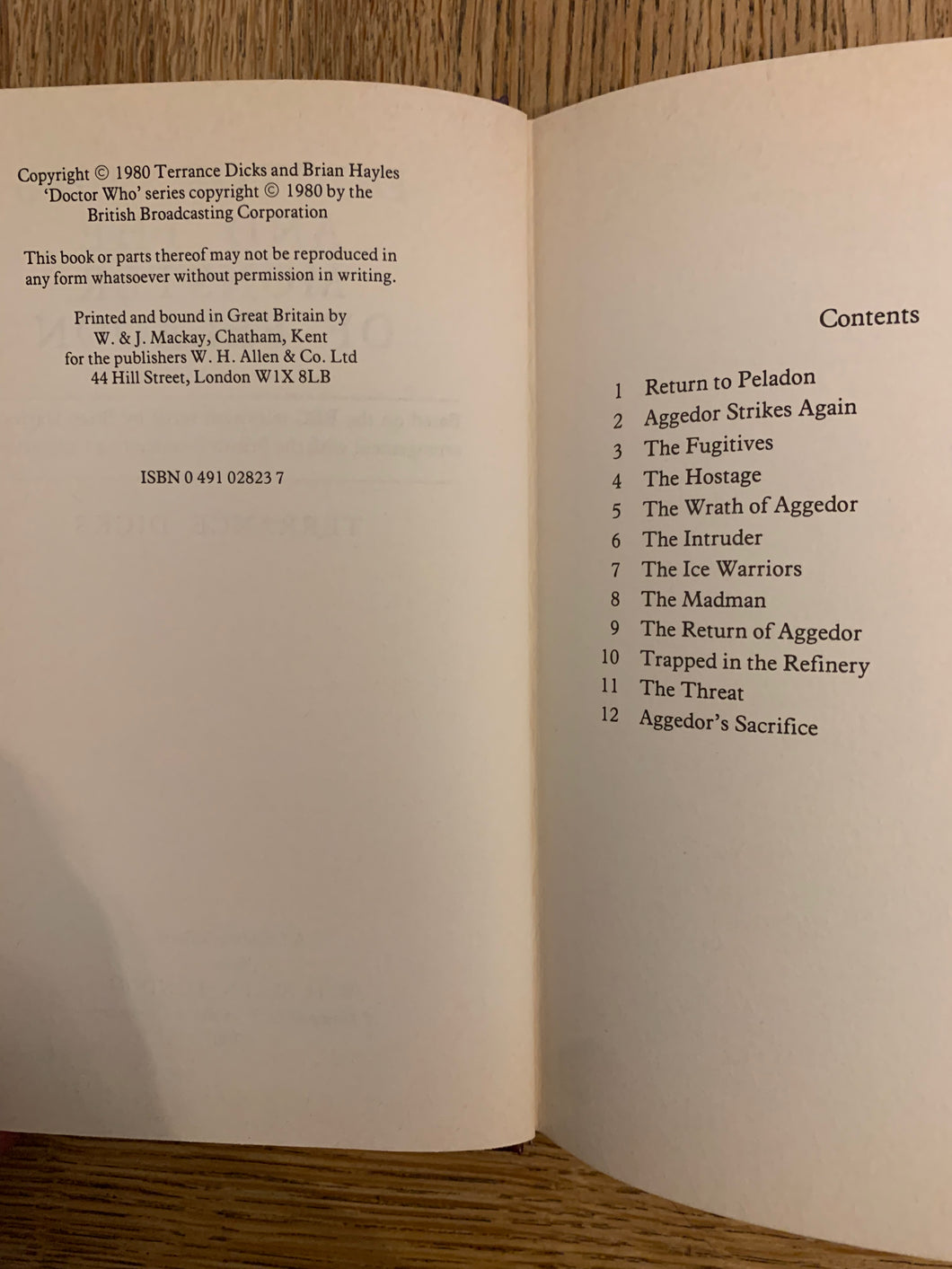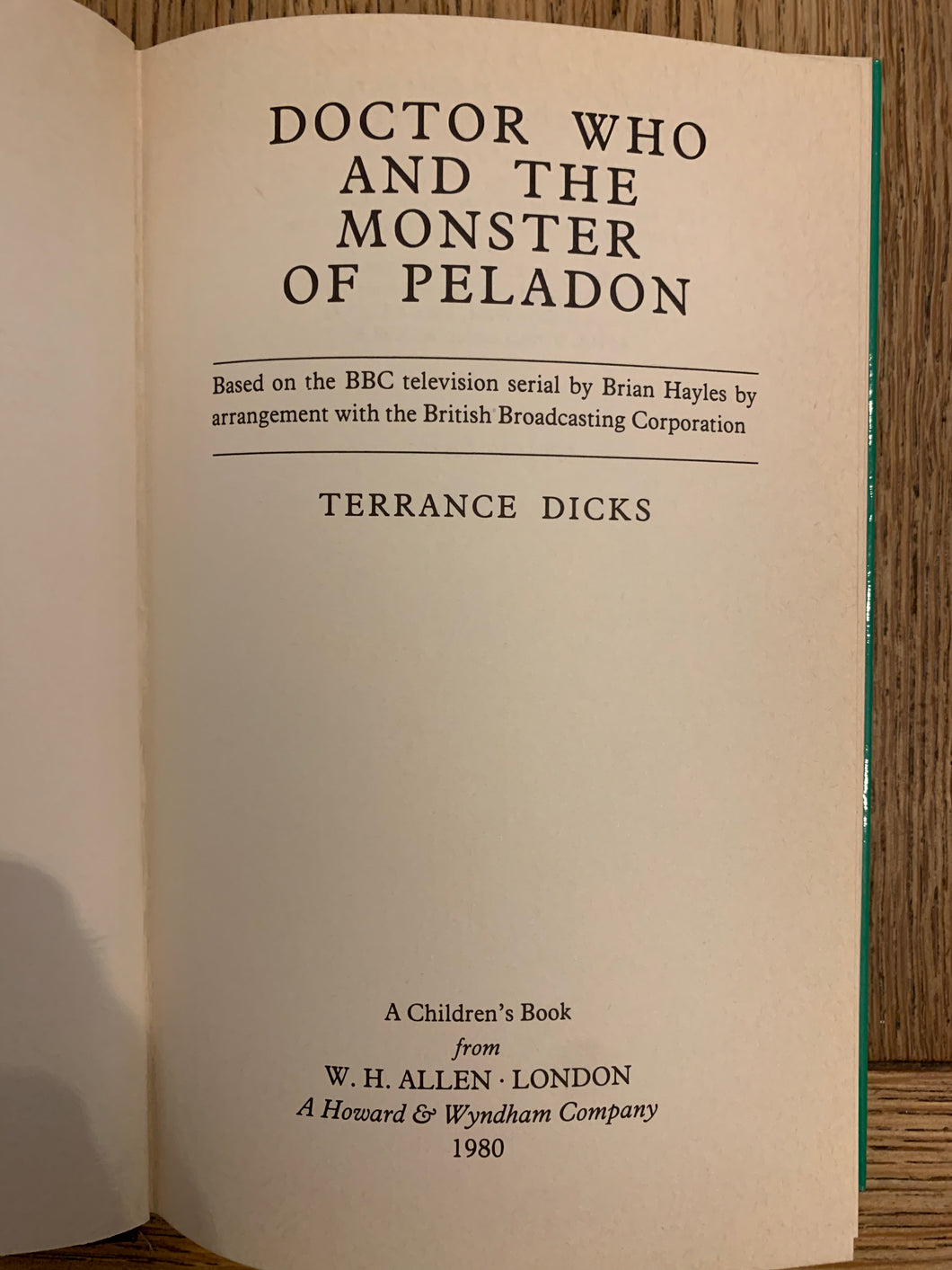 'Doctor Who and the Monster of Peladon' by Terrance Dicks. Published by WH Allen. 1980. UK 1st edition. Laminated pictorial boards. No dust wrapper as issued.